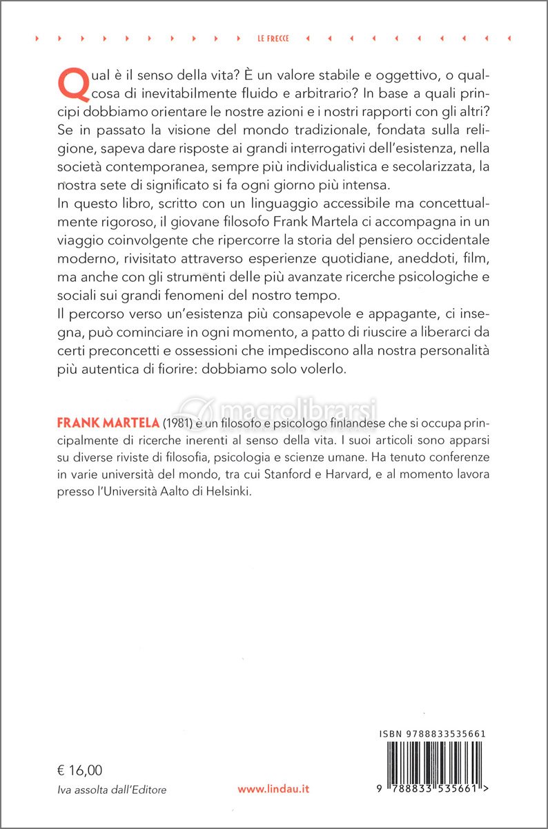 In un linguaggio accessibile ma filosoficamente rigoroso, passando dalla dimostrazione al racconto di aneddoti ed esperienze quotidiane, Frank Martela ci spiega che la nostra esistenza non ha un significato ultimo ma che per questo non dobbiamo scoraggiarci.