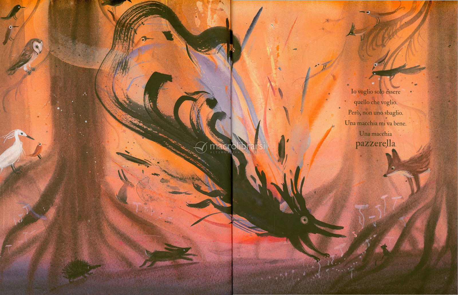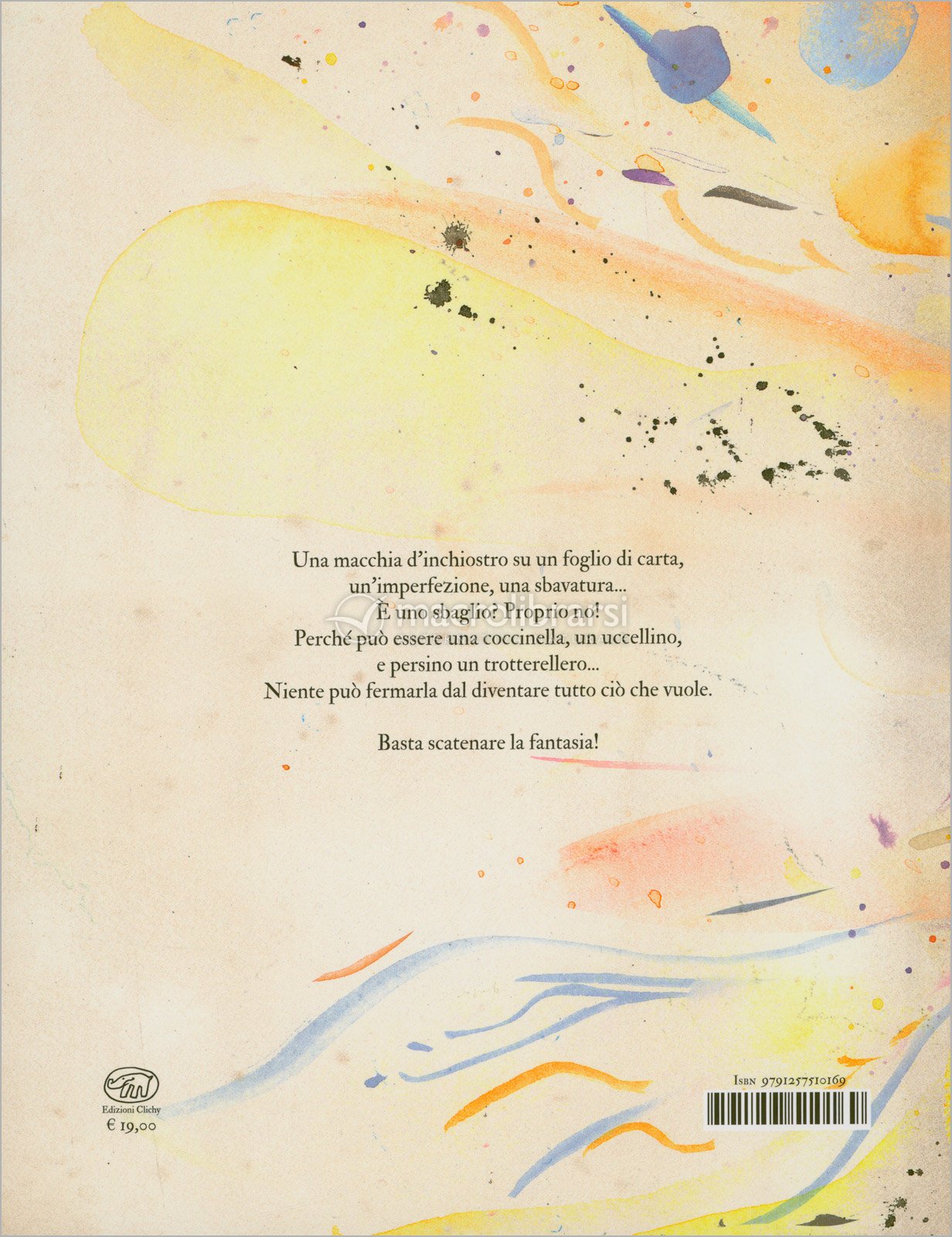 Tutto comincia con una macchia d’inchiostro su un foglio bianco. Un piccolo errore, una sbavatura qualunque… o forse no. Perché quella macchia ha un sogno: diventare qualcosa di nuovo, trasformarsi in una coccinella, una libellula, un uccellino, persino un trotterellero!