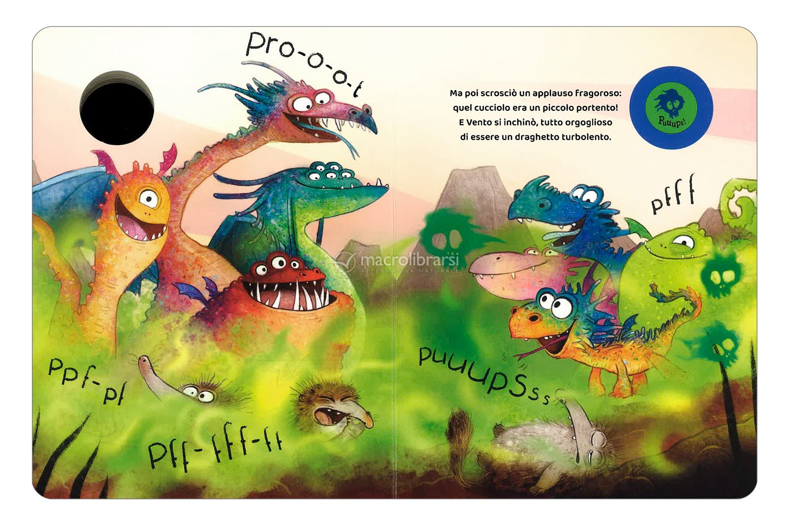 Il piccolo Vento è un draghetto un po’ fuori dal comune: invece di sputare fuoco come tutti gli altri… combina guai decisamente più rumorosi!