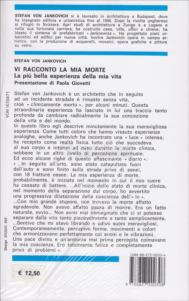 In questo libro egli descrive minutamente la sua meravigliosa esperienza. Come tutti coloro che hanno vissuto esperienze analoghe, anche Jankovich ha incontrato una "luce" intensa; ha recepito come realtà fisica tutto ciò che succedeva al suo corpo e intorno ad esso durante la morte clinica, sebbene in un altro livello di percezione spirituale.