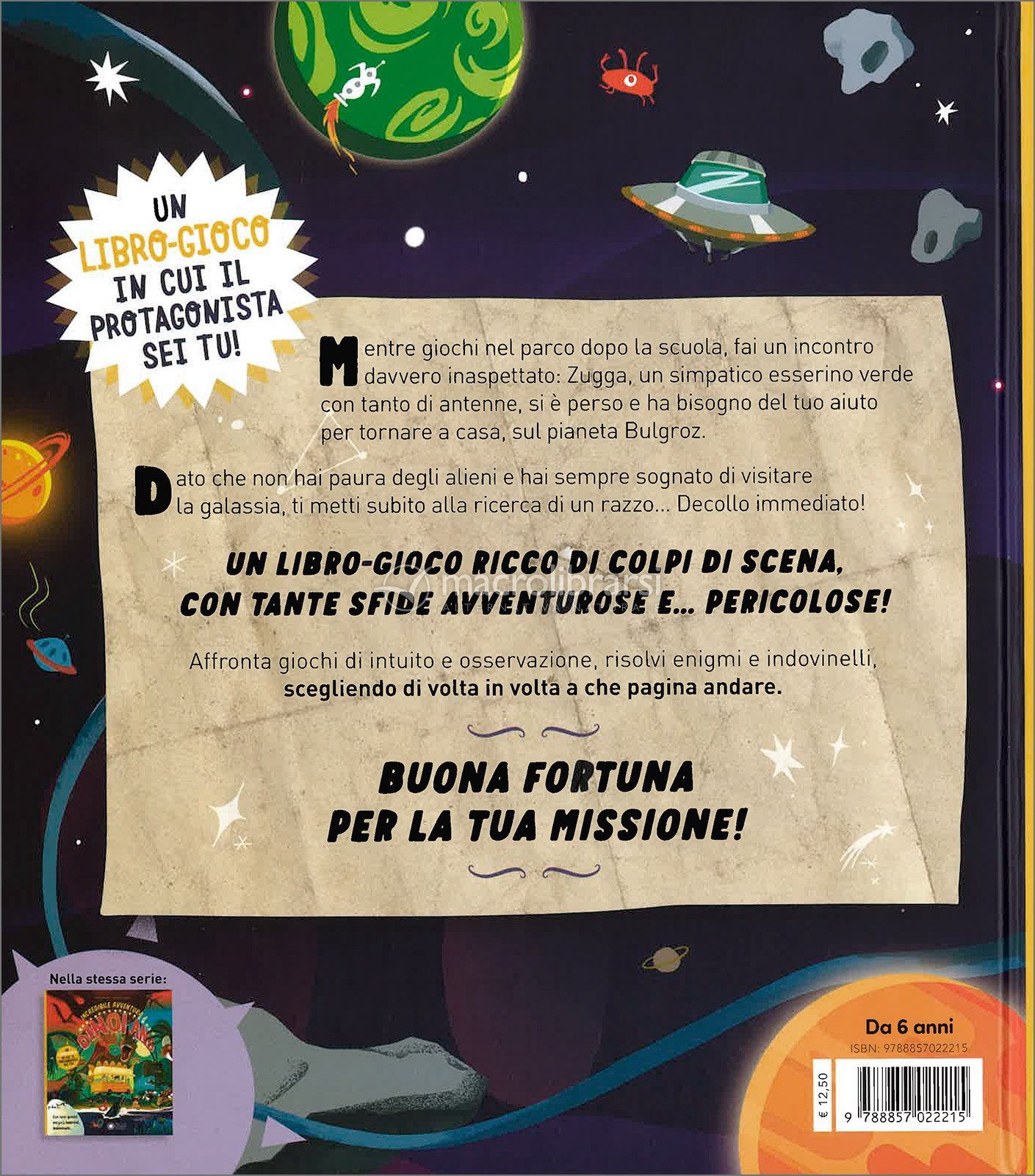 Un’avventura spaziale tutta da vivere… in prima persona! Al parco incontri il piccolo alieno Zugga e, in un attimo, ti ritrovi coinvolto in una missione intergalattica: aiutarlo a tornare sul suo pianeta lontano.