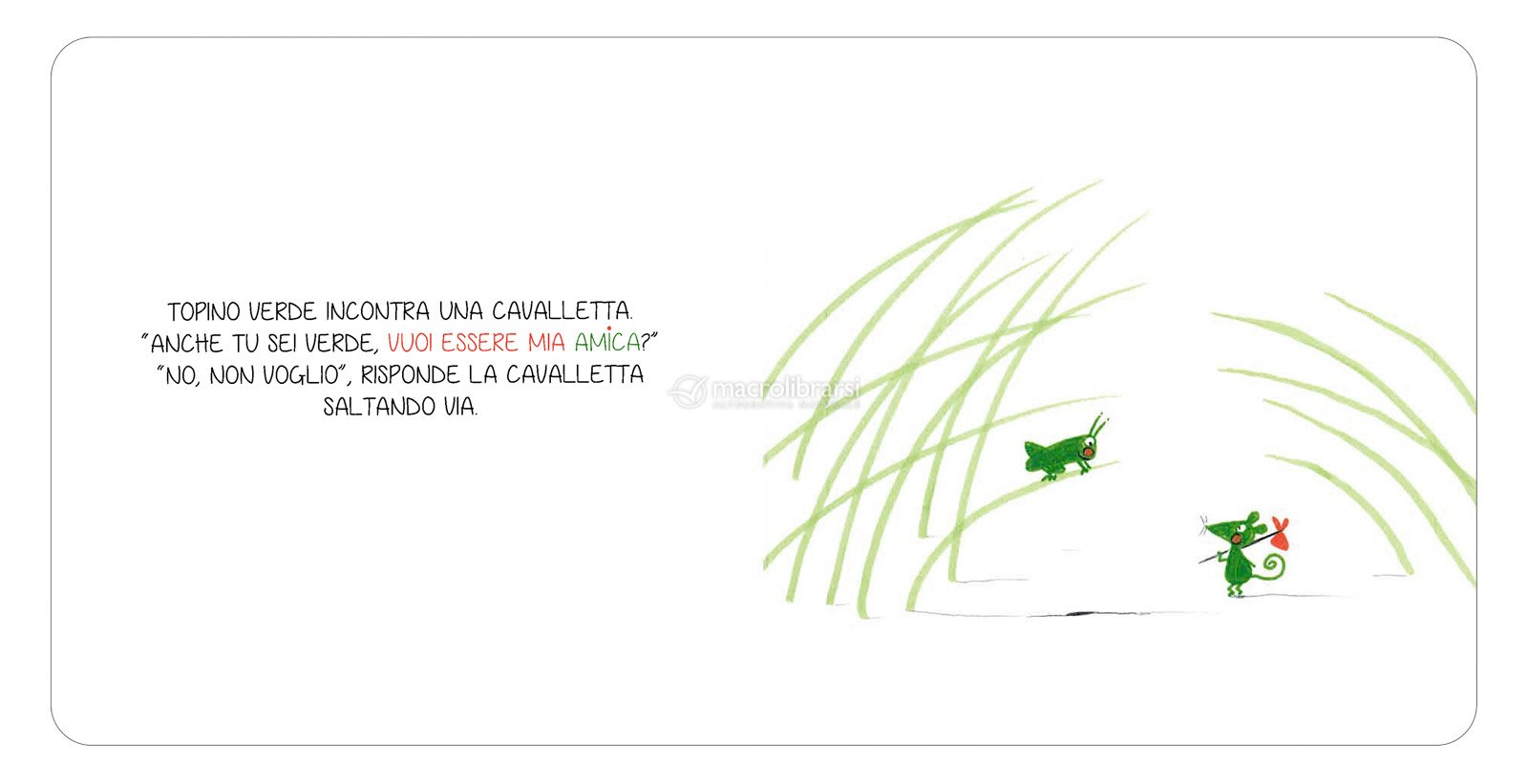 Topino verde cerca di fare amicizia con gli altri topini grigi, ma trova difficile essere accettato a causa del suo colore diverso.