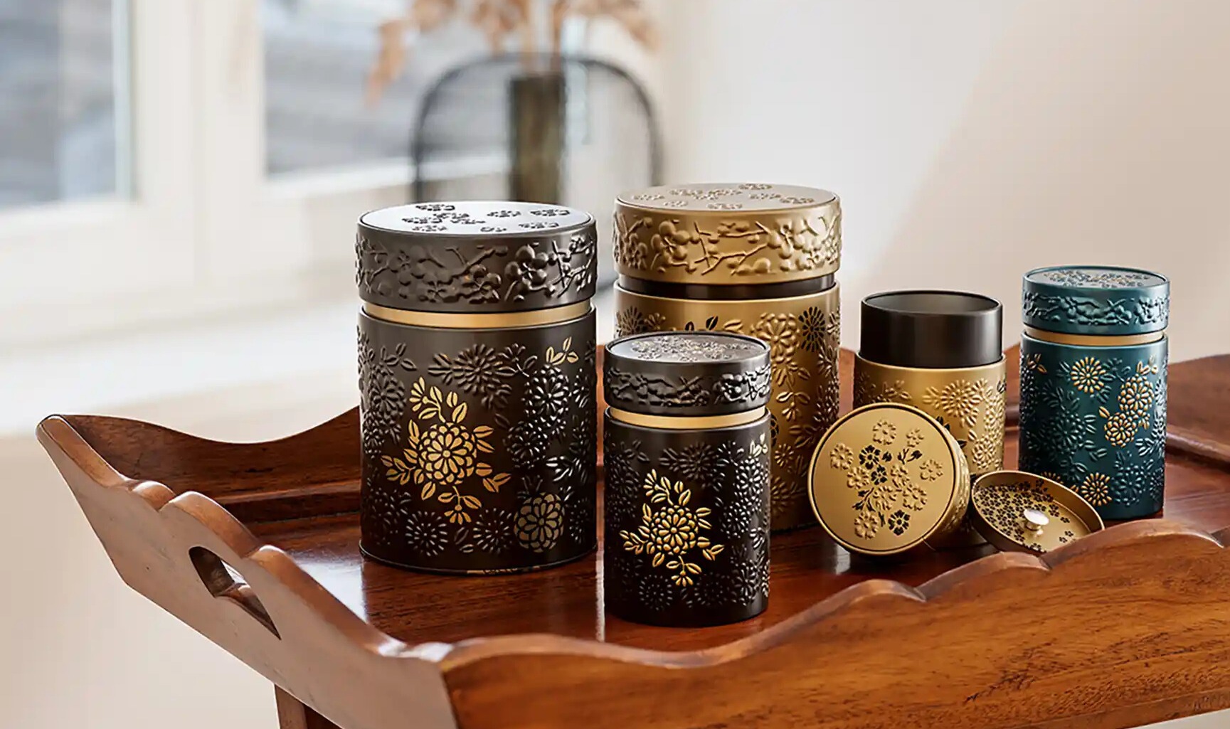 Una scatola raffinata con fiori di loto per custodire tè, tisane e infusi