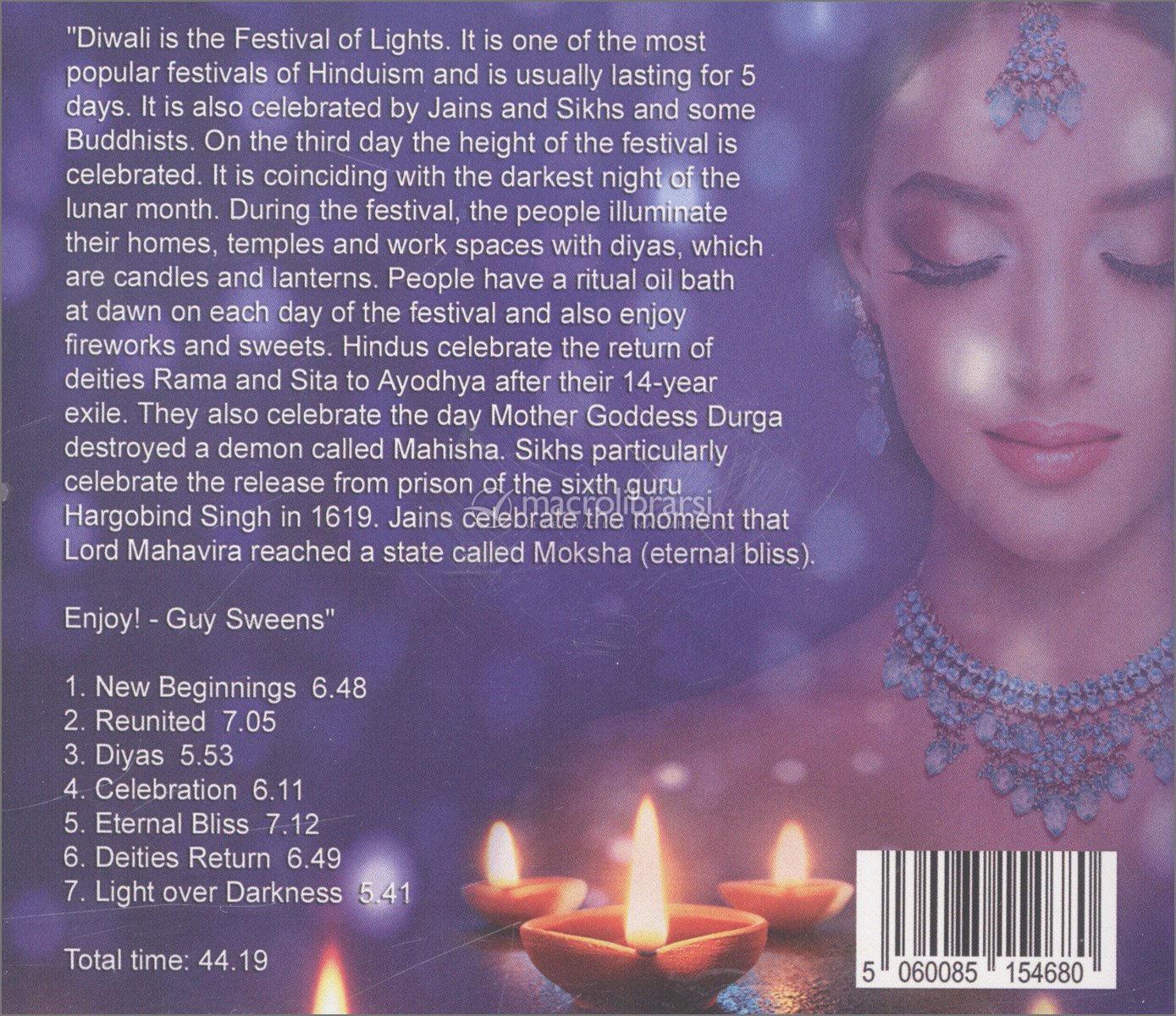 L'ultimo album di Guy Sweens, "Diwali", prende il nome ed è dedicato al festival delle luci, una delle manifestazioni più famose dell'induismo che dura cinque giorni e si svolge nel mese indù di ashwayuja che solitamente cade tra ottobre e novembre. Si tratta di una festa che viene celebrata, per motivi diversi, da giainisti, sikh e buddisti. I giainisti celebrano il momento in cui Mahavira raggiunse uno stato chiamato Moksha, una sorta di grazia eterna; gli induisti celebrano il ritorno delle divinità Rama e Sita ad Ayodhya dopo 14 anni d'esilio e ricordano anche il giorno in cui la divinità Madre Durga ha distrutto un demonio chiamato Mahisha; i sikh celebrano l'uscita di prigione del sesto guru Hargobind Singh nel 1619. Durante il festival Diwali la gente illumina le proprie case, i templi ed i luoghi di lavoro con le diyas, delle piccole candele e lanterne tradizionali e tutti i giorni al tramonto è usanza farsi un bagno rituale d'olio. Il terzo giorno è il clou della festa e corrisponde con la notte più buia del mese lunare. "Diwali" è un disco intenso con ritmi quasi ipnotici che si fondono con le sonorità di meravigliosi paesaggi musicali che evocano il misticismo di questa festa sacra.