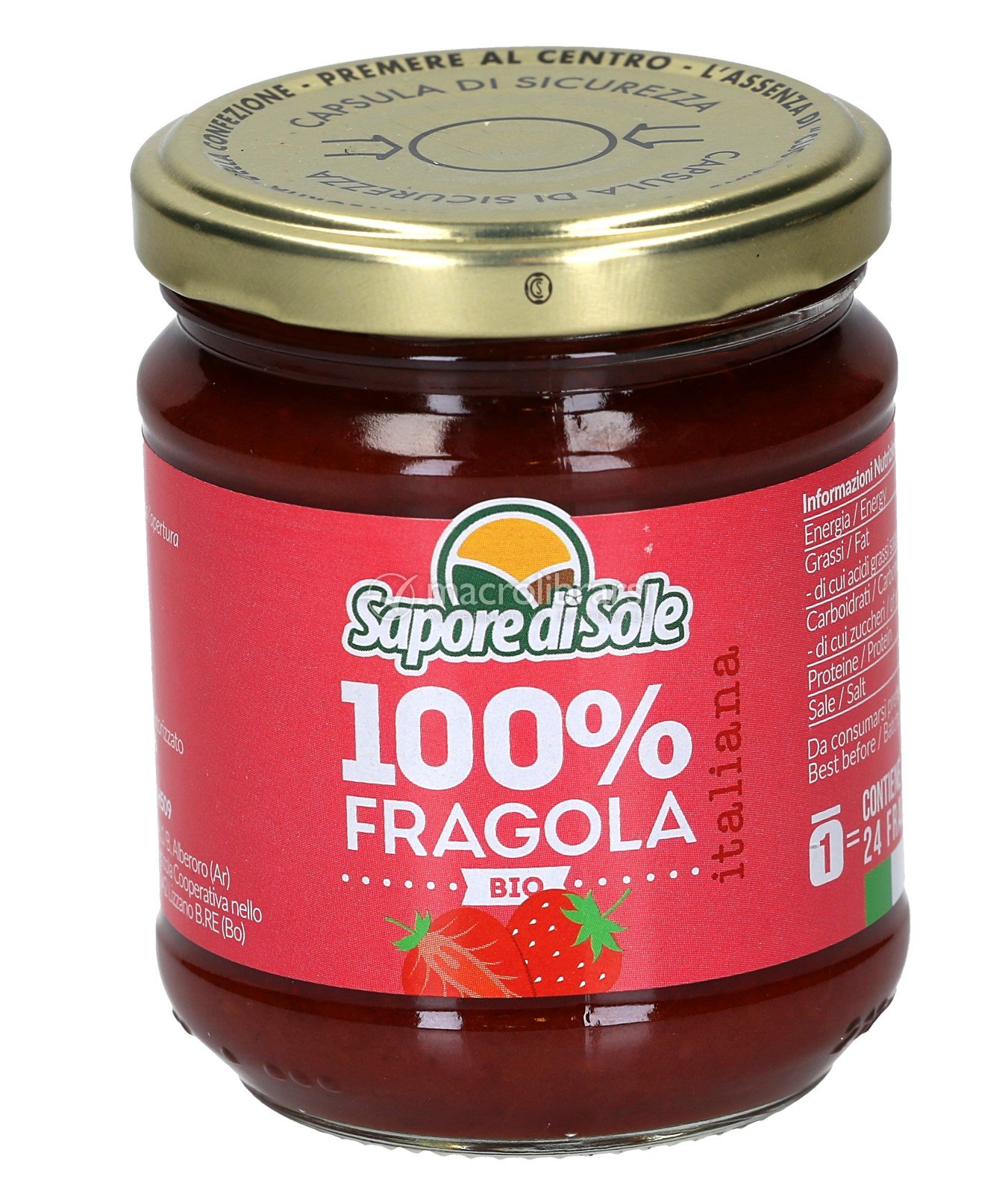 100% fragola di Sapore di Sole è una composta preparata con un solo ingrediente, utilizzando esclusivamente fragole italiane coltivate nell'area incontaminata dell'Appennino Romagnolo, nei dintorni di Lizzano in Belvedere.