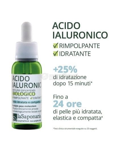 Cosmetico attivo dal forte potere idratante e antiage, l'acido ialuronico (sodio ialuronato) di La Saponaria è un prodotto naturale perfetto per prendersi cura della tua bellezza.