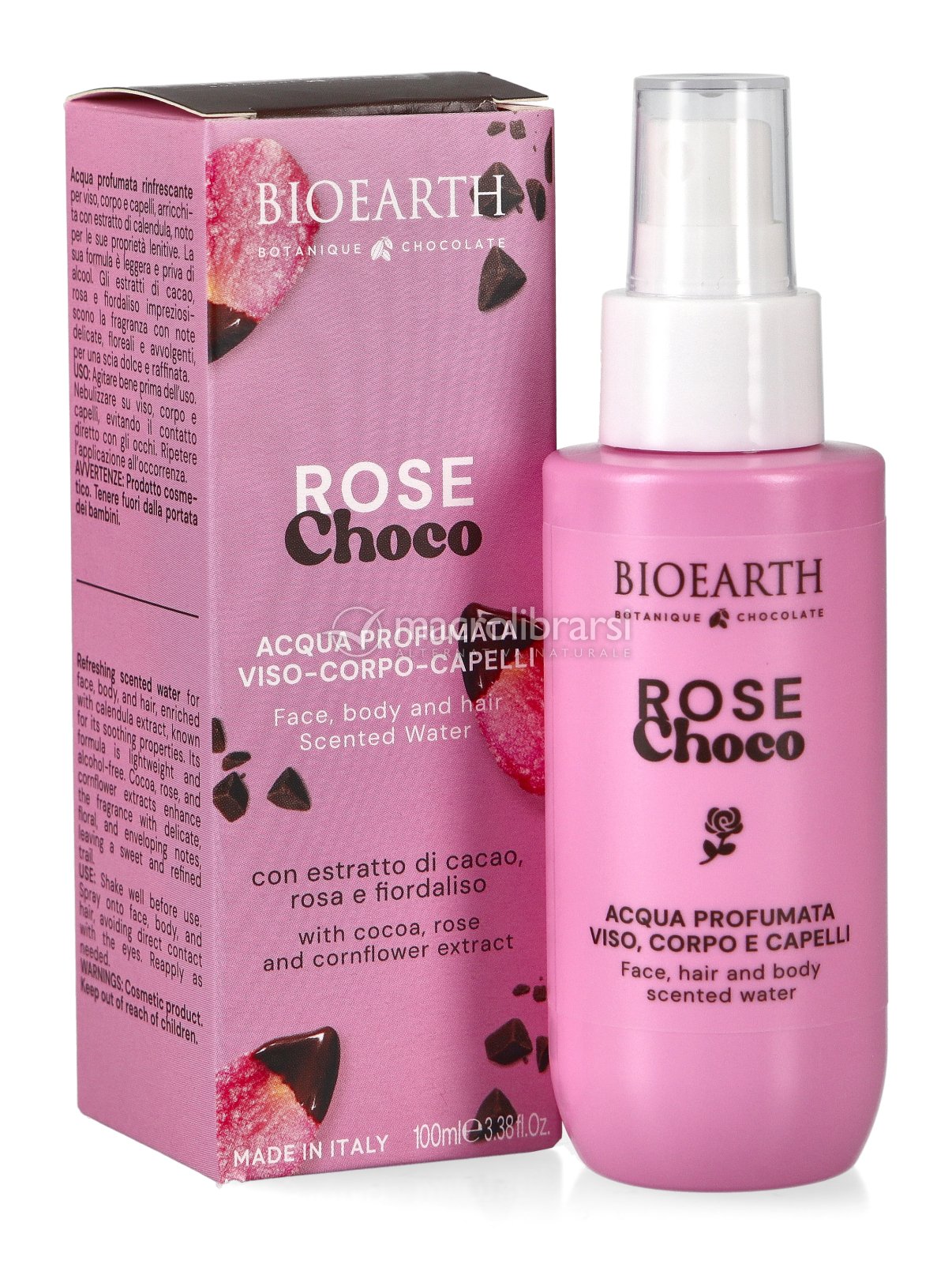 Arricchita con estratto di calendula, noto per le sue proprietà lenitive, l'Acqua Profumata Rose Choco di Bioearth ha una formula leggera e una fragranza dalle note delicate, floreali e avvolgenti date dagli estratti di cacao, rosa e fiordaliso, per una scia dolce e raffinata.