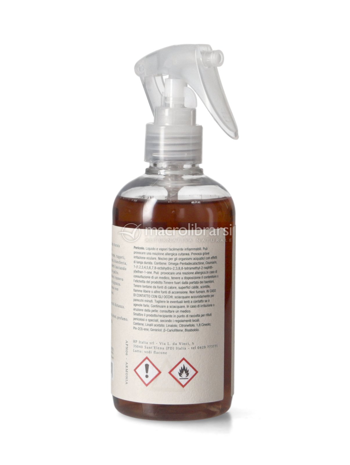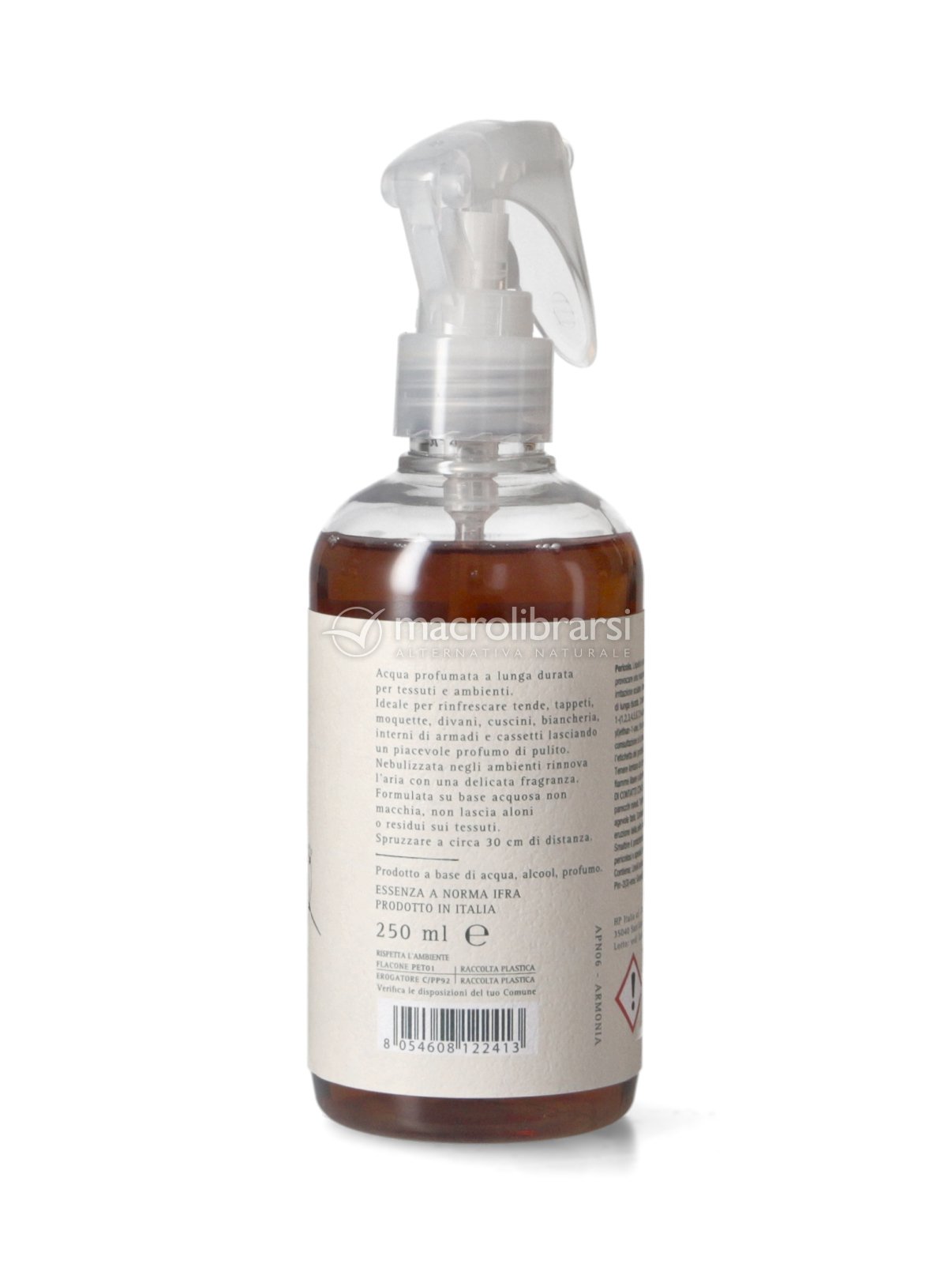 L’Acqua Profumata Armonia è ideale per avvolgere a lungo i tessuti o per essere nebulizzata nell’aria, diffondendo una freschezza immediata e persistente.