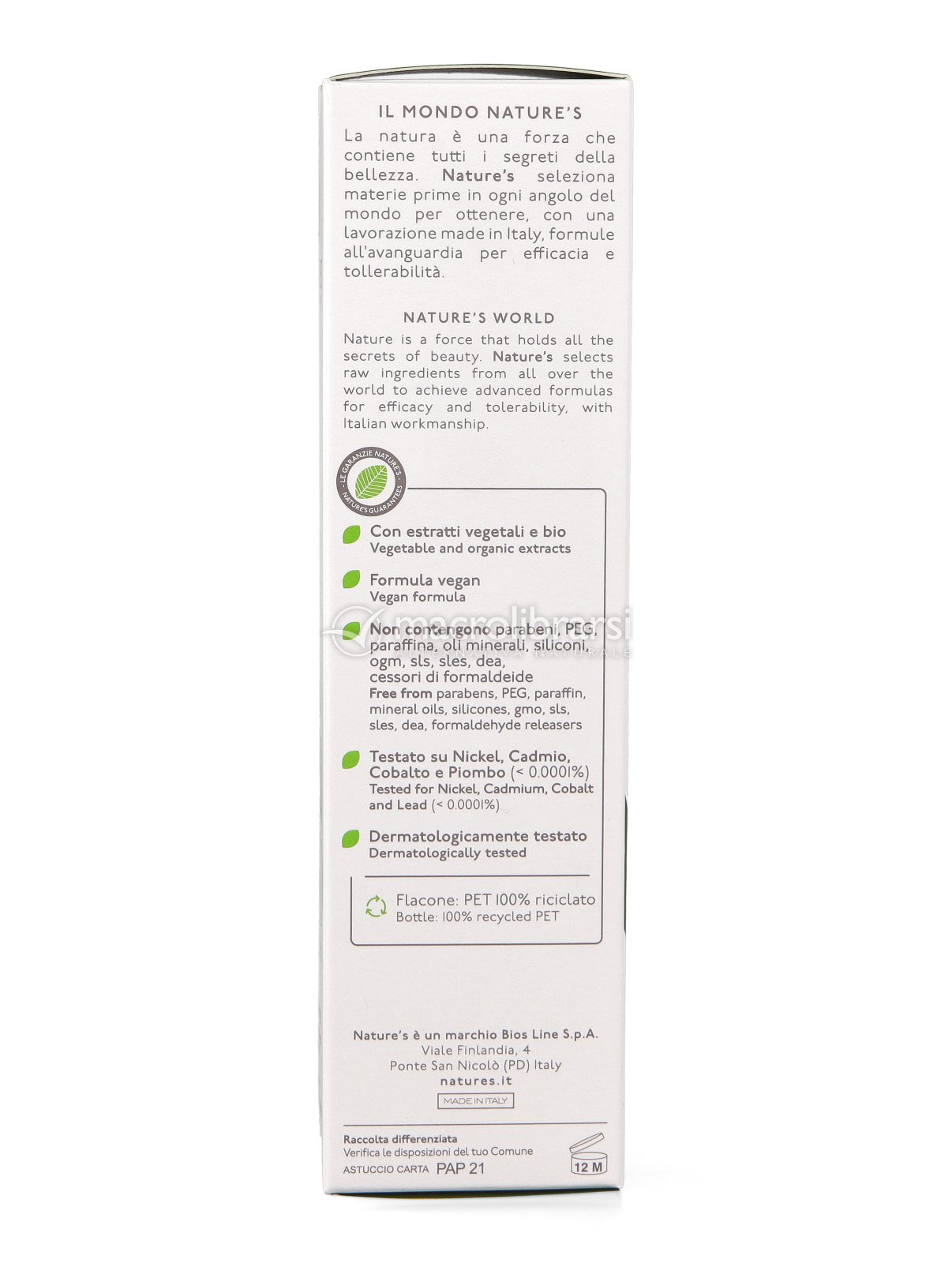 Disclaimer | I dati riportati sulla confezione del prodotto (INCI, consigli di utilizzo, data di scadenza, certificazioni, etc) possono variare sulla base dell'aggiornamento delle formulazioni da parte dei produttori, dell'arrivo di un nuovo lotto e dell'adeguamento alle norme di legge. Vi preghiamo pertanto di fare sempre riferimento alle informazioni presenti in etichetta prima di utilizzare il prodotto acquistato. Le immagini riportate hanno uno scopo puramente indicativo e sono soggette a variazioni da parte dei produttori. |