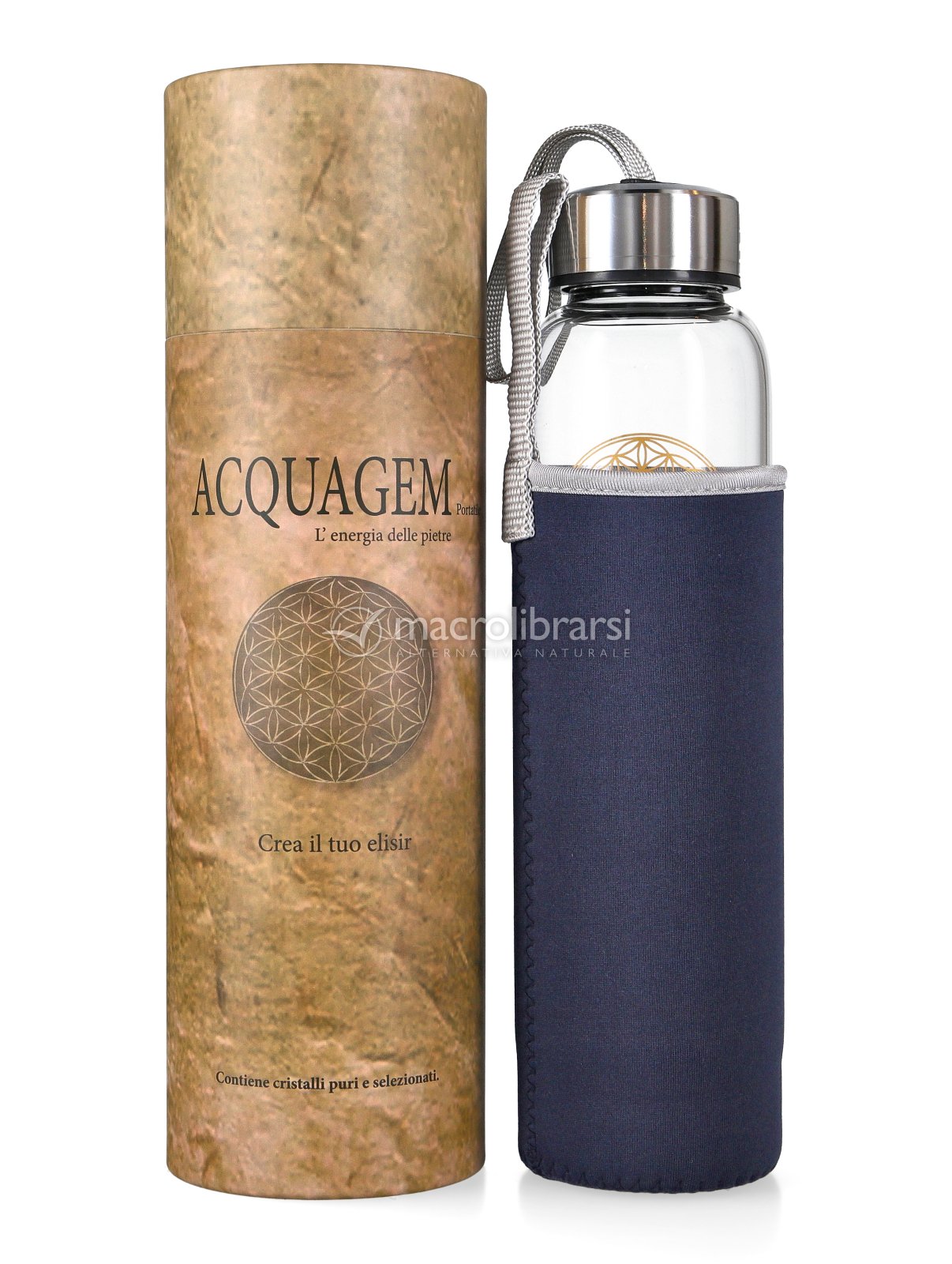 Bottiglia in vetro 500 ml + cristalli + tappo + copertura in neoprene