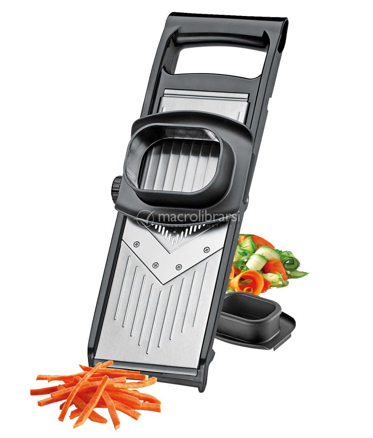 perfetto, semplicemente perfetto per chi lo usa a casa. non è adatto per un utilizzo professionale ma in ambito domestico è ottimo. peccato che non sia completamente in acciaio ma comunque è facile da pulire in quanto si puo' mettere in lavastoviglie. lama affilatissima, bisogna stare molto attenti quindi consiglio di unsare sempre l'apposito salvadita che viene fornito insieme. anche i due inserti per taglio a bastoncino e julienne sono comodissimi!!. speriamo che le lame durino molto comunque sono avvitate quindi penso che svitandole si possano affilare. oppure spero vendano dei ricambi solo per la lama