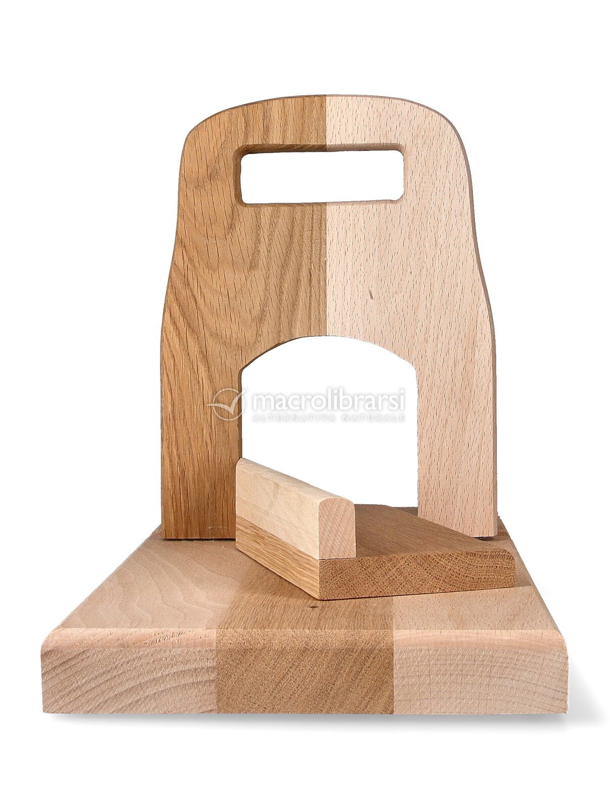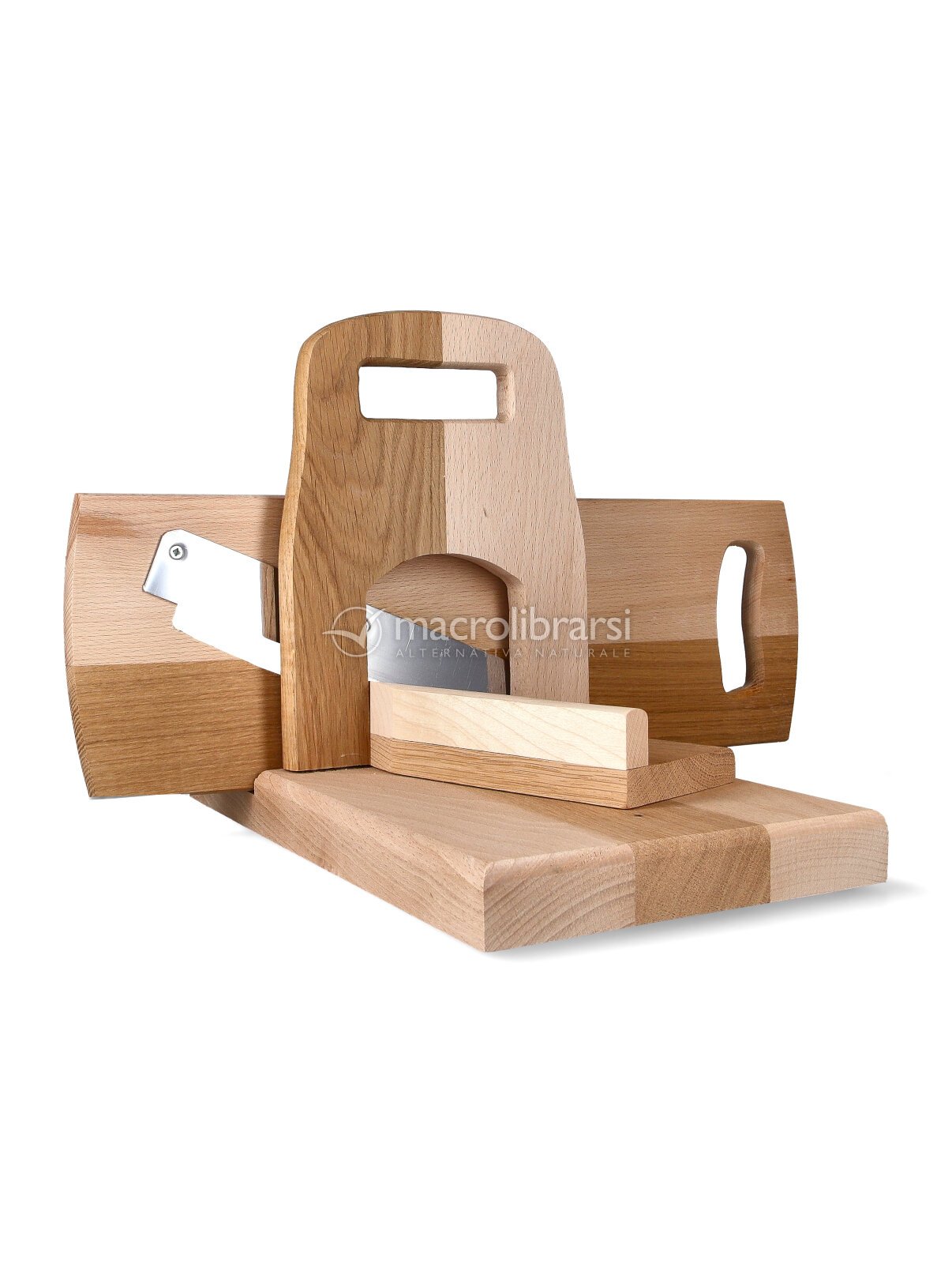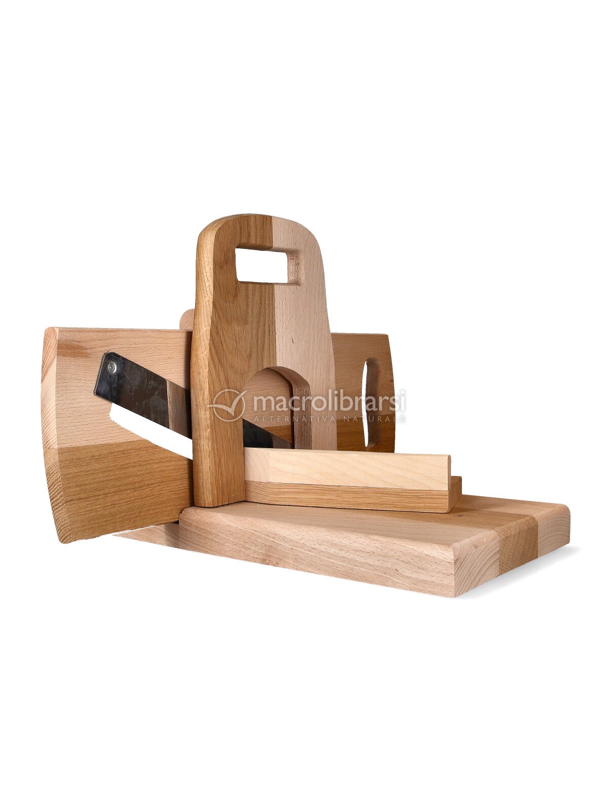Affettatrice manuale per salumi e formaggi in puro legno di faggio non trattato.