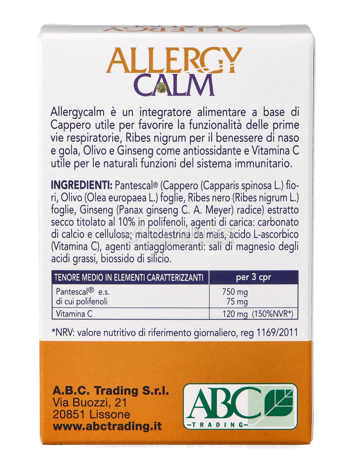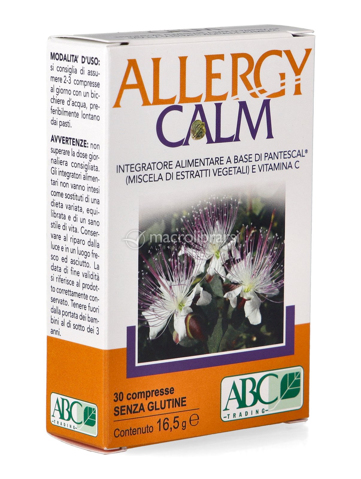 Allergy calm di ABC Trading è un integratore a base di un complesso vegetale in grado aiutare a riequilibrare le risposte del sistema immunitario in caso di presenza di sostanze normalmente innocue che però, su alcuni organismi, vengono percepite come nemiche, causando reazioni avverse sull'organismo stesso (ad esempio riniti, lacrimazione, dermatiti, bruciori oculari, ecc.), piuttosto comuni ad esempio in primavera.