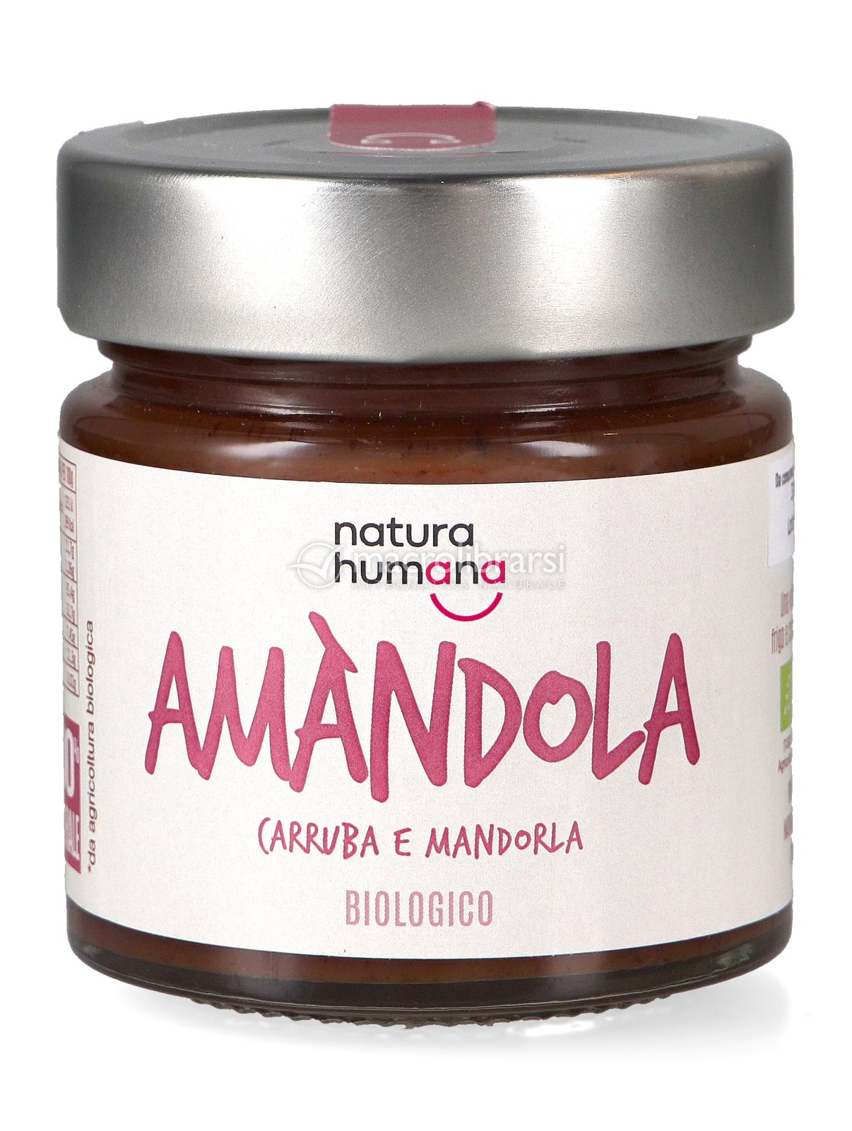 Amàndola Bio di Natura Humana è una crema spalmabile fatta al 100% con ingredienti naturali e vegetali con carruba estratta a freddo e pasta di mandorla integrale.