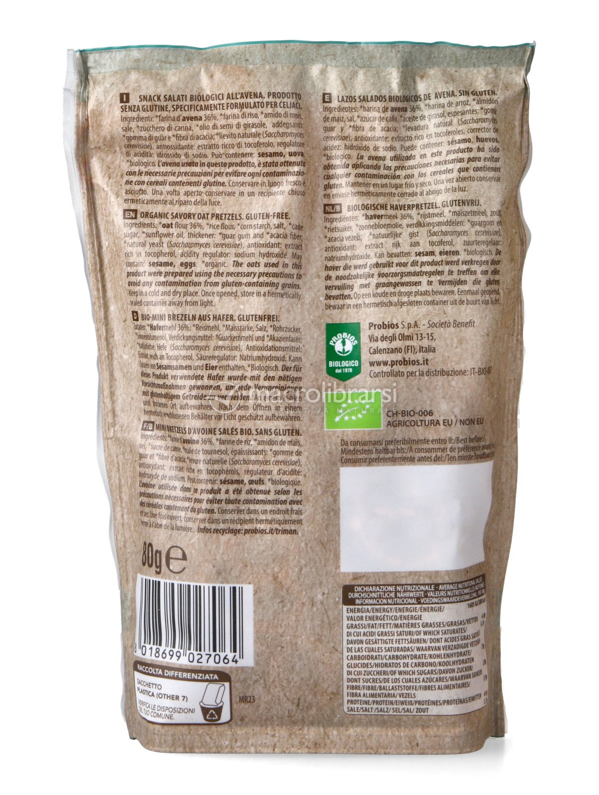 Aperi-Brezel di Probios è uno snack biologico senza glutine, realizzato con farine di avena e riso, ideale per chi cerca gusto e leggerezza in ogni momento della giornata.