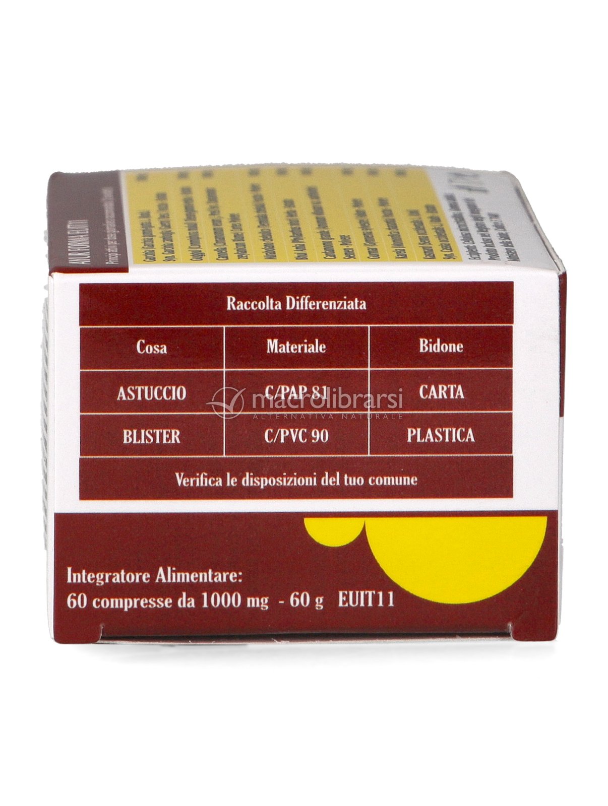 | Disclaimer | Non superare la dose giornaliera consigliata. Gli integratori alimentari non vanno intesi come sostituti di una dieta variata ed equilibrata. Tenere fuori dalla portata dei bambini al di sotto dei tre anni. Non utilizzare in gravidanza e nei bambini o comunque per periodi prolungati senza sentire il parere del medico. Conservare in luogo asciutto e lontano da fonti di calore. Richiudere la confezione dopo l'uso. Macrolibrarsi ricorda l'importanza di seguire uno stile di vita sano e un'alimentazione variata ed equilibrata. |