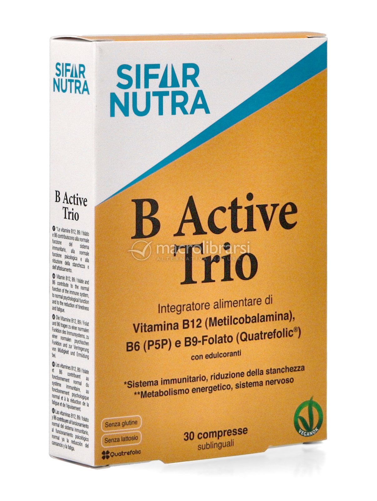 Il folato contenuto in B Active Trio è Quatrefolic® che rappresenta il folato di quarta generazione, dotato di stabilità di lunga durata, è molto più solubile in acqua ed ha una maggiore biodisponibilità.