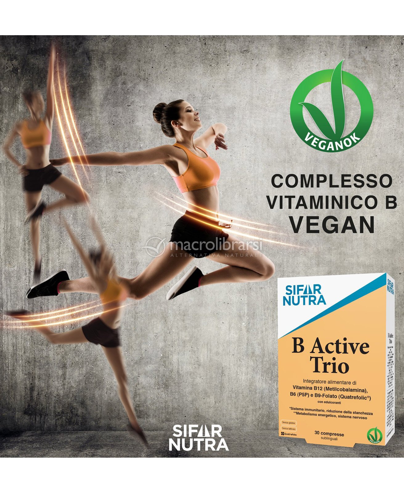 B Active Trio contiene tre tipi di vitamine (B12, B9 e B6) che hanno dei ruoli diversi ed essenziali nel nostro organismo: