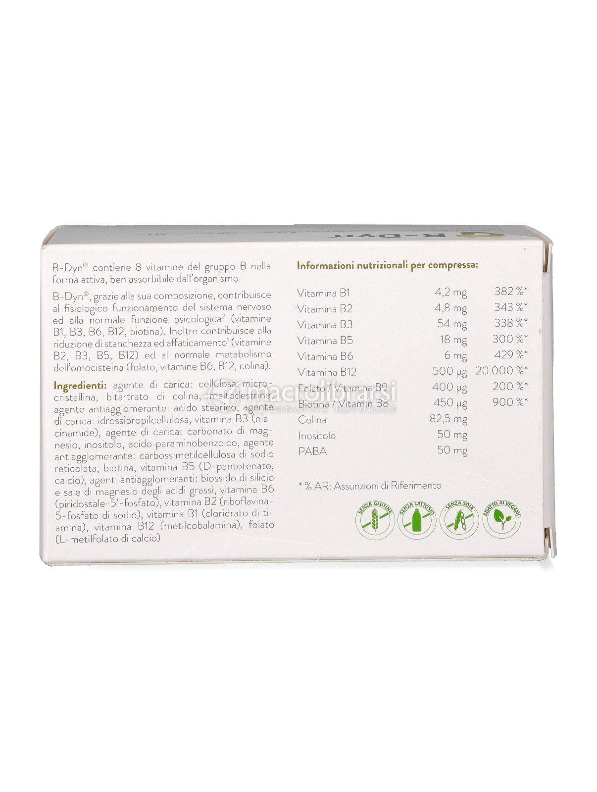 - Contiene le 8 vitamine principali del gruppo B + Inositolo, PABA e Colina