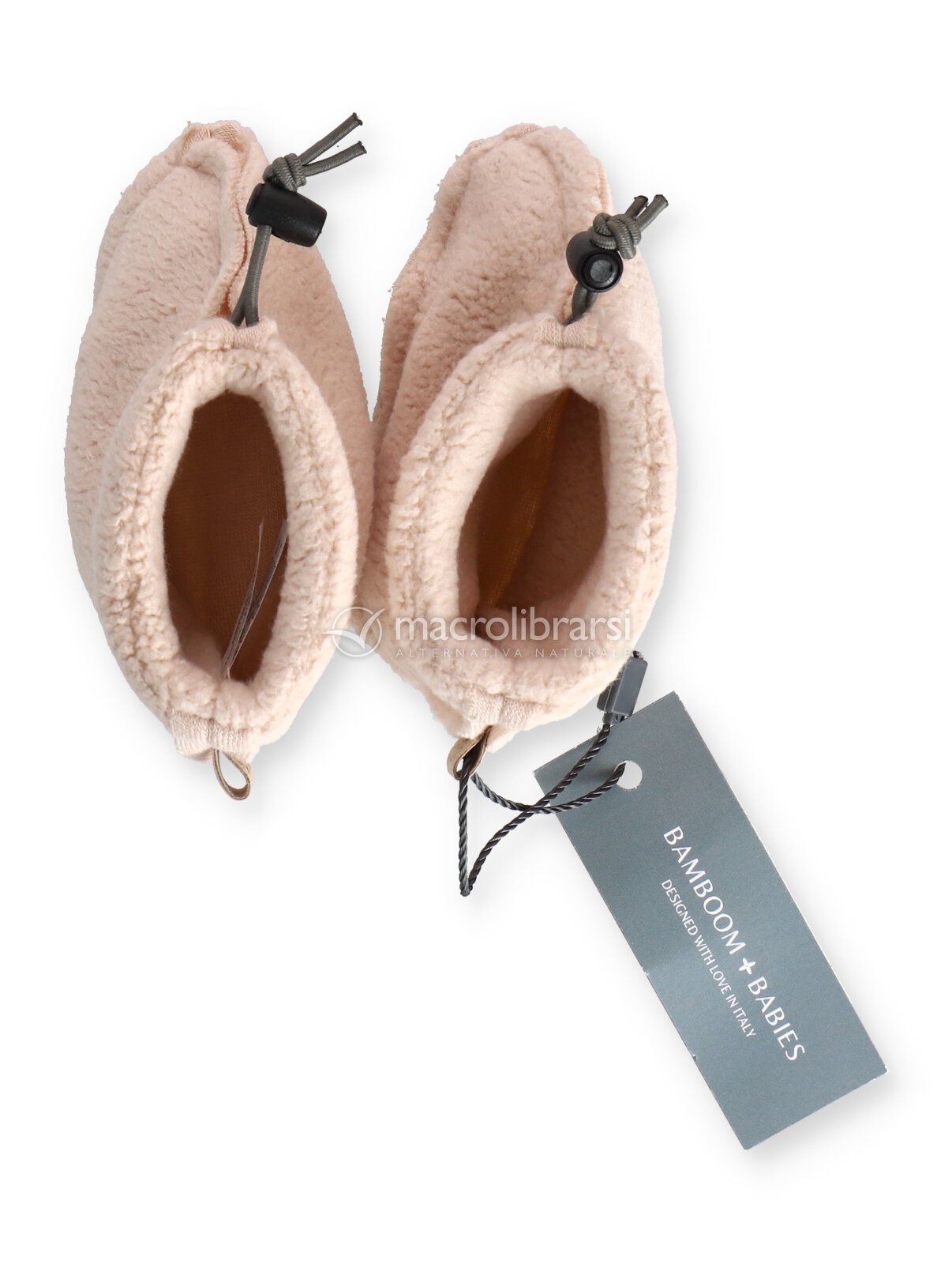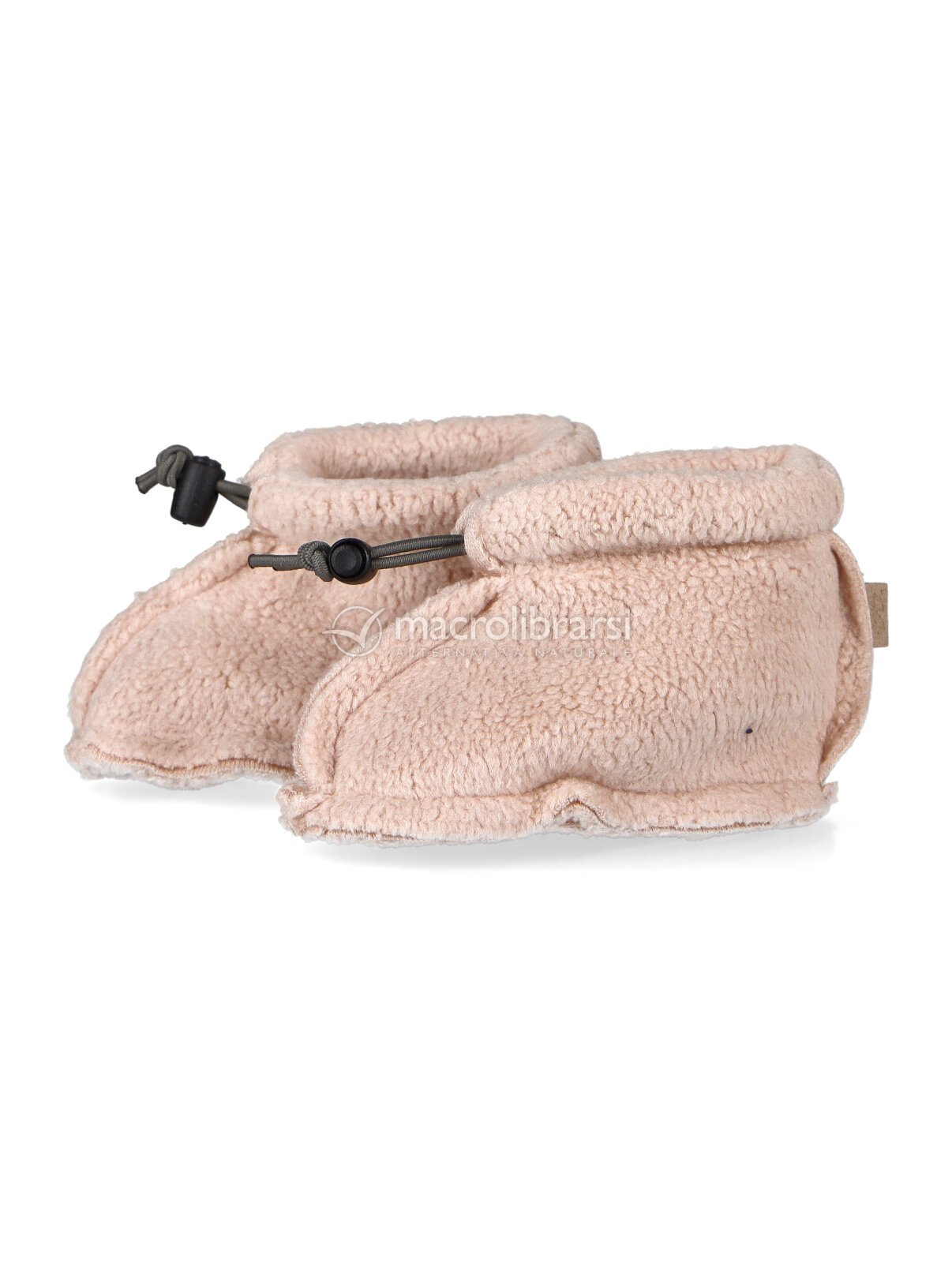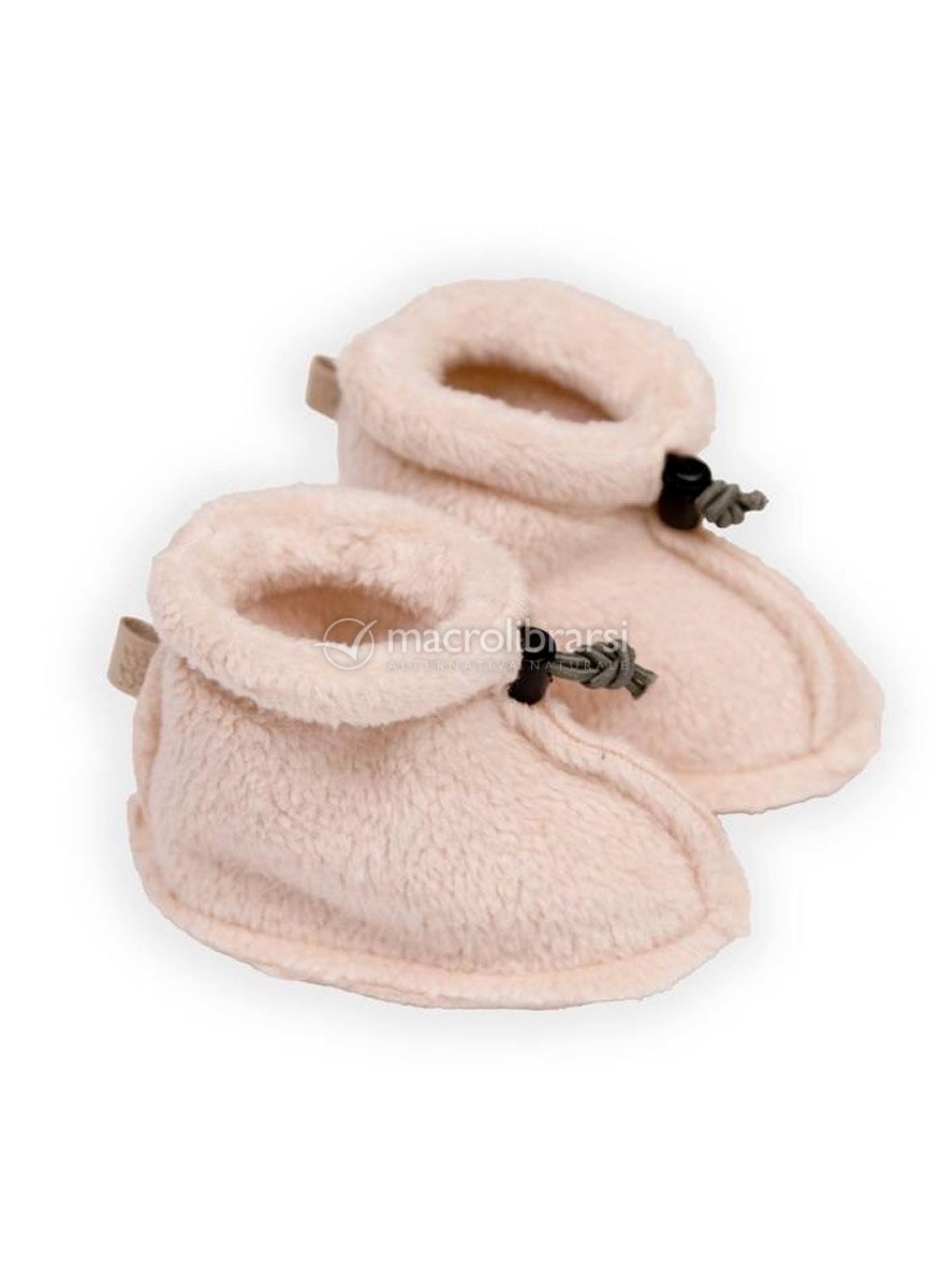Babbucce rosa con cordino regolabile in bambù organico con tessuto teddy, della collezione autunno-inverno 2025/2026 di Bamboom.