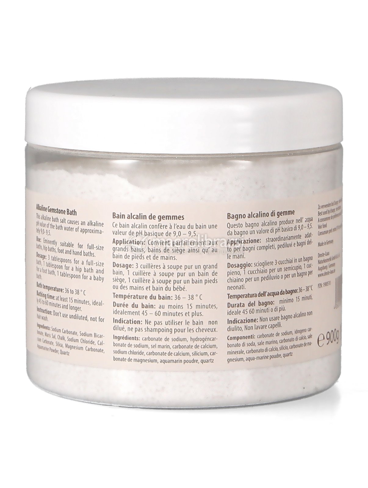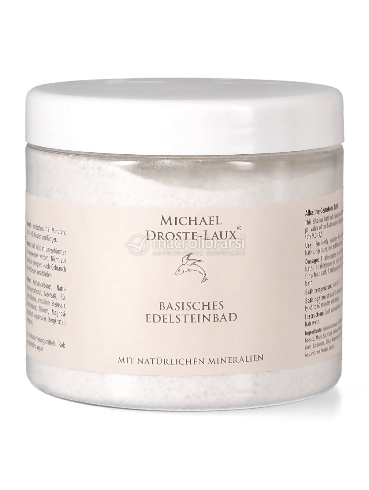 Il Bagno Basico di Gemme Michael Droste-Laux si rifà alla tradizione di cura basica risalente a centinaia di anni fa. Il contatto armonico tra la pelle e l'acqua del bagno - basica con pH 8,5 - così come il sottile scambio energetico che si crea tra le due, crea un bagno basico di gemme di prima qualità.
