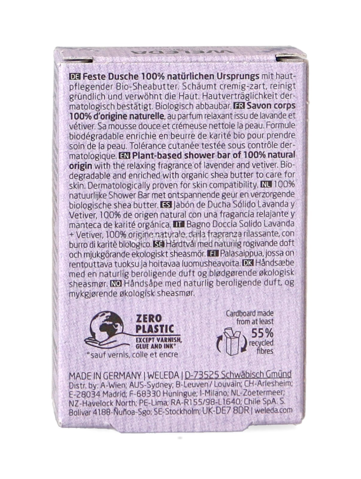 Bagno doccia solido biologico per il corpo dalla formula concentrata completamente biodegradabile al profumo rilassante di Lavanda e Vetiver.