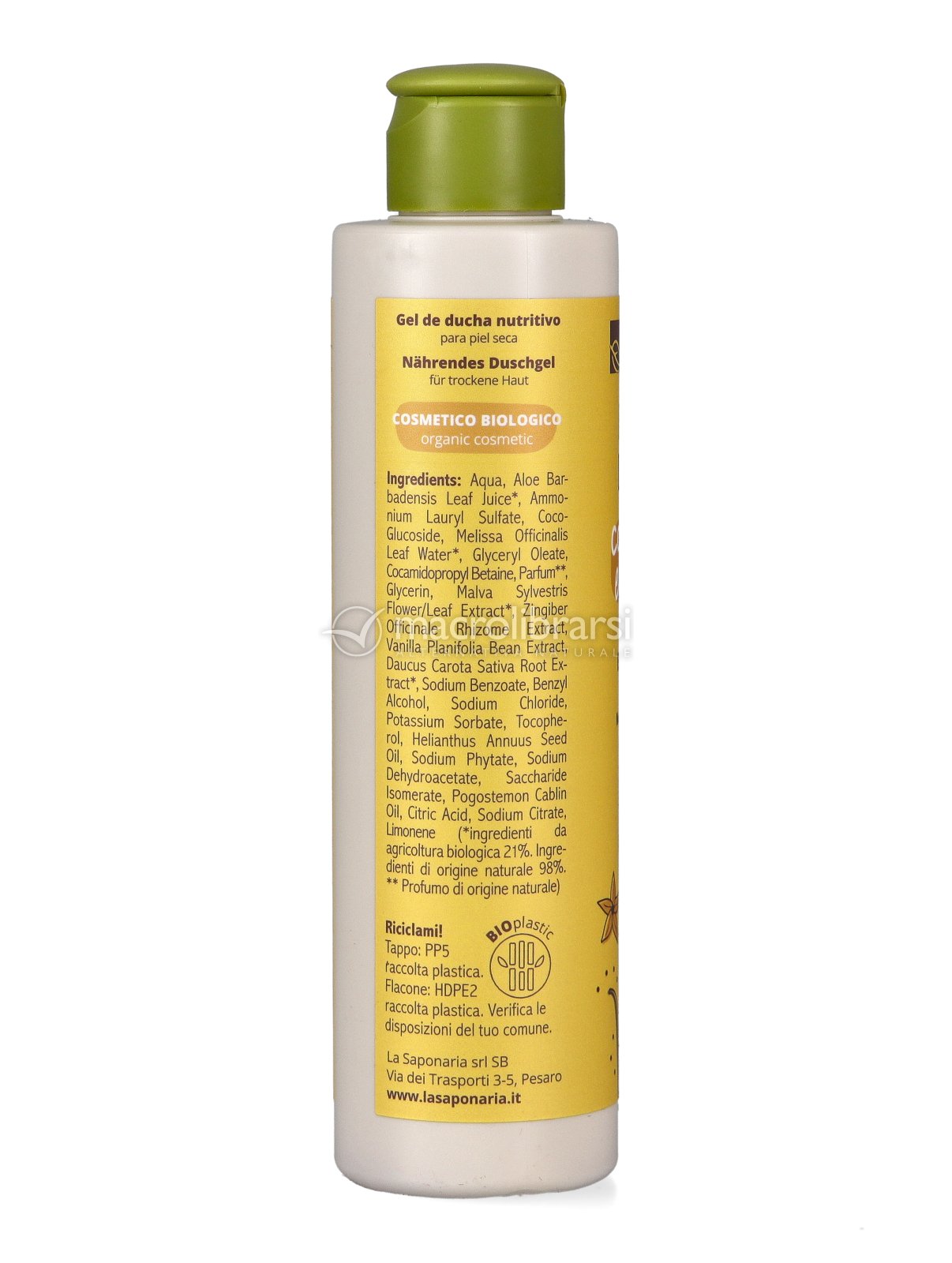 Detergente corpo delicato con Carota, Zenzero, Aloe, estratto di Malva e Melissa.