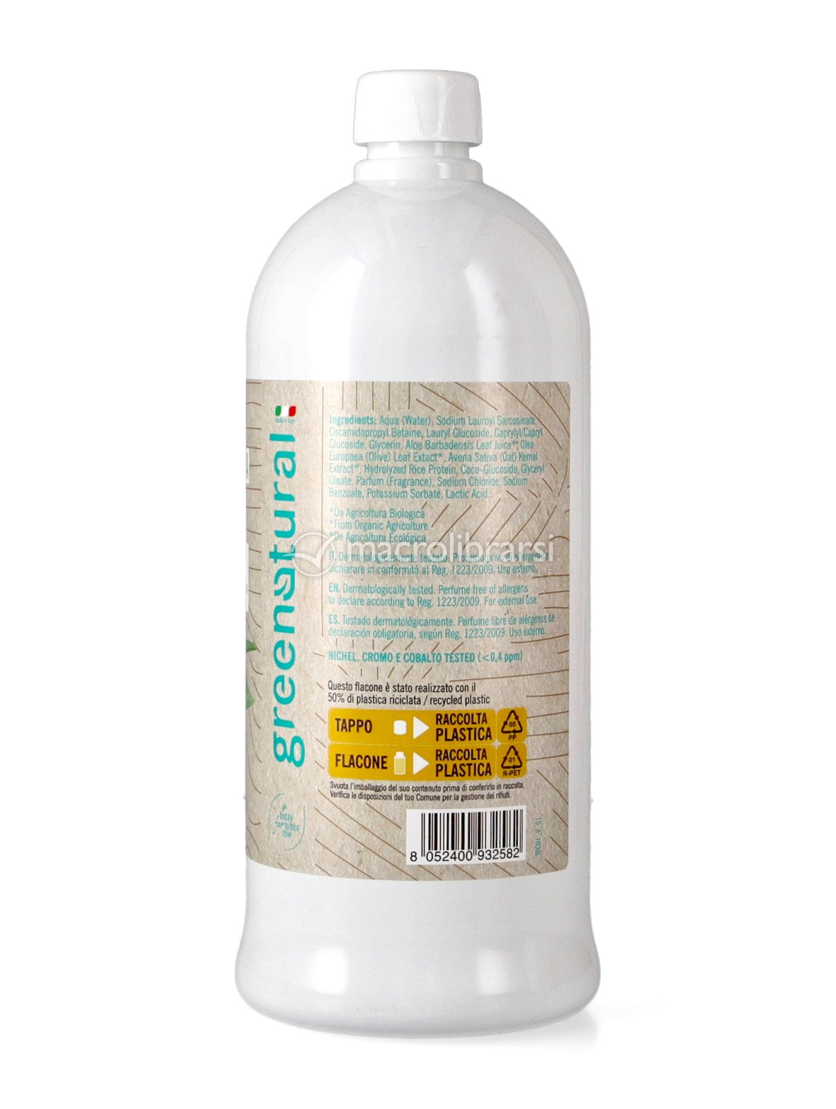 L'estratto di Olivo è ricco di polifenoli antiossidanti, mentre l'Avena, un cereale antico, è nota per le sue proprietà idratanti e calmanti, ottime in caso di prurito o pelle secca. Il prodotto è profumato con una miscela di oli essenziali ed è privo di SLS, SLES e coloranti.