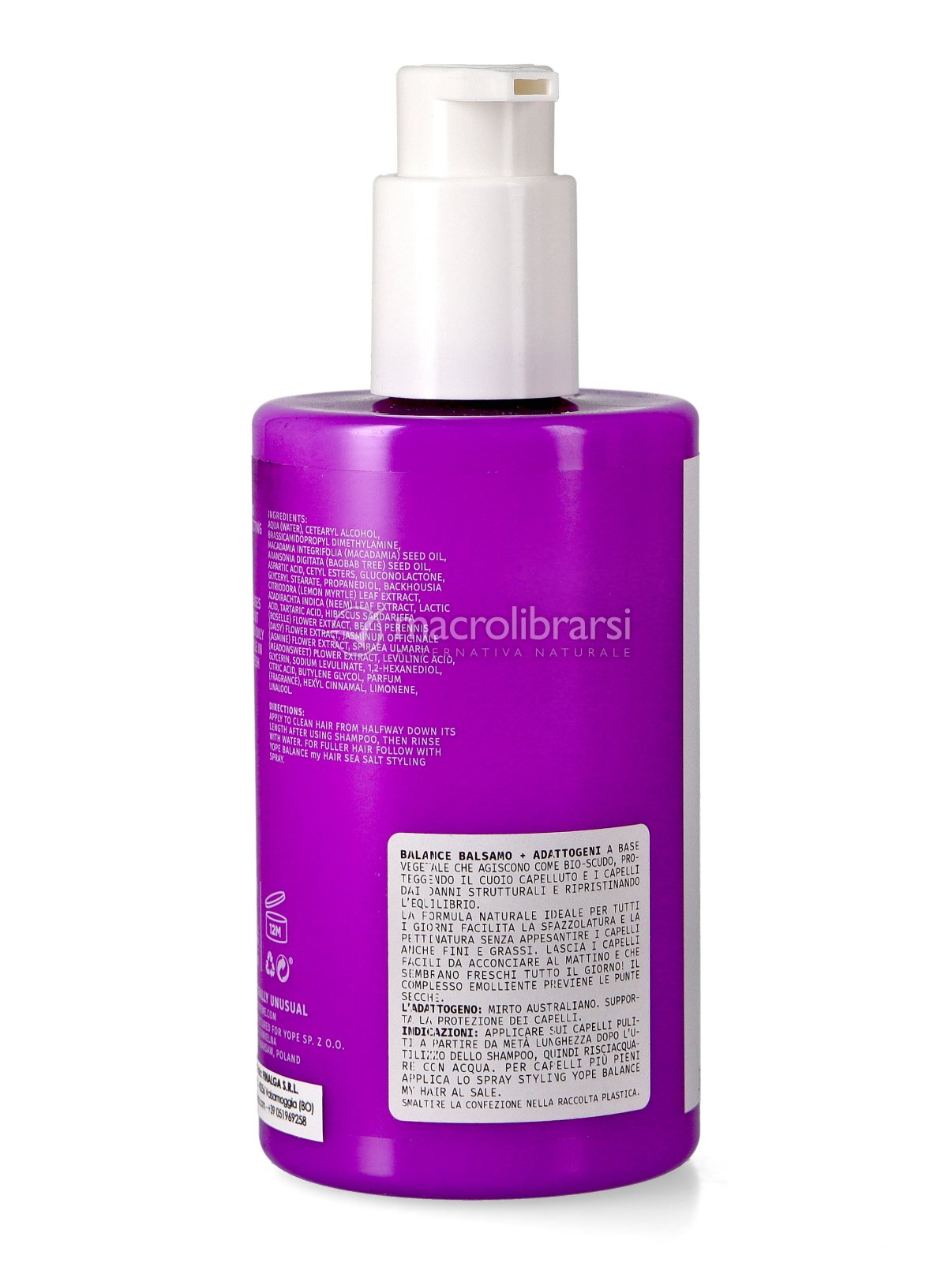 Applicare il balsamo sui capelli lavati, dalla metà della loro lunghezza e risciacquare dopo qualche minuto. Per capelli più pieni, applica lo Spray Styling Balance al Sale Marino.