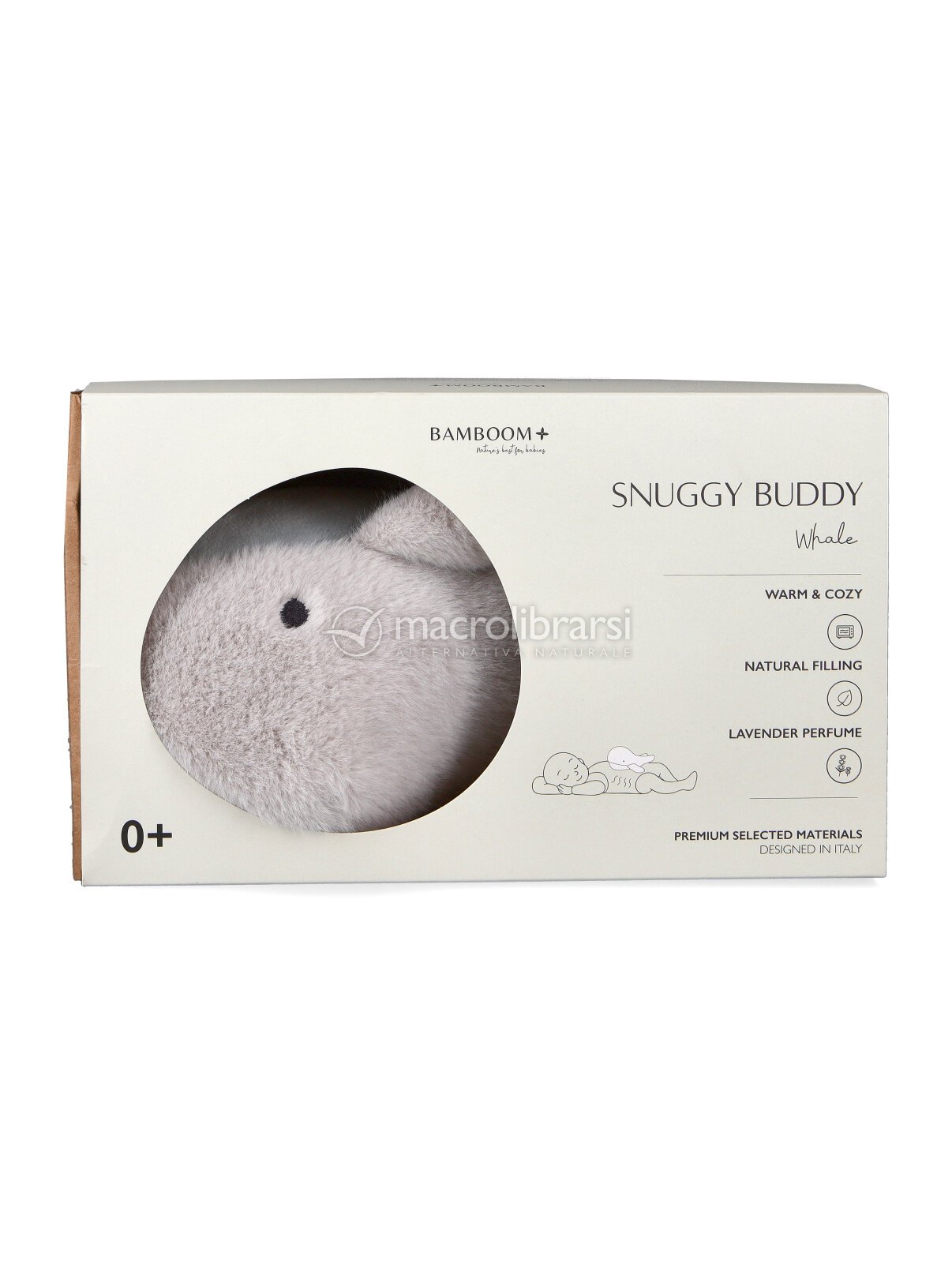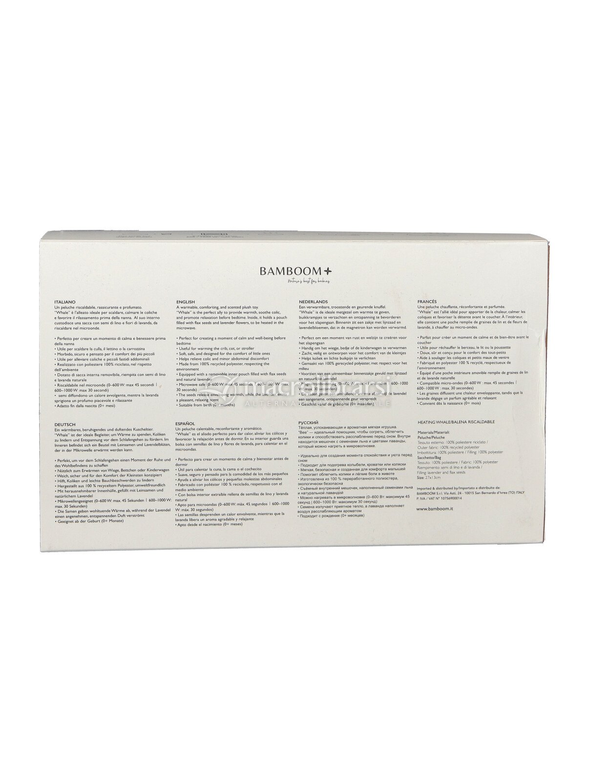 Peluche morbidissimo a forma di balena con, all'interno, un sacchettino di semi di lino e lavanda che si può scaldare.