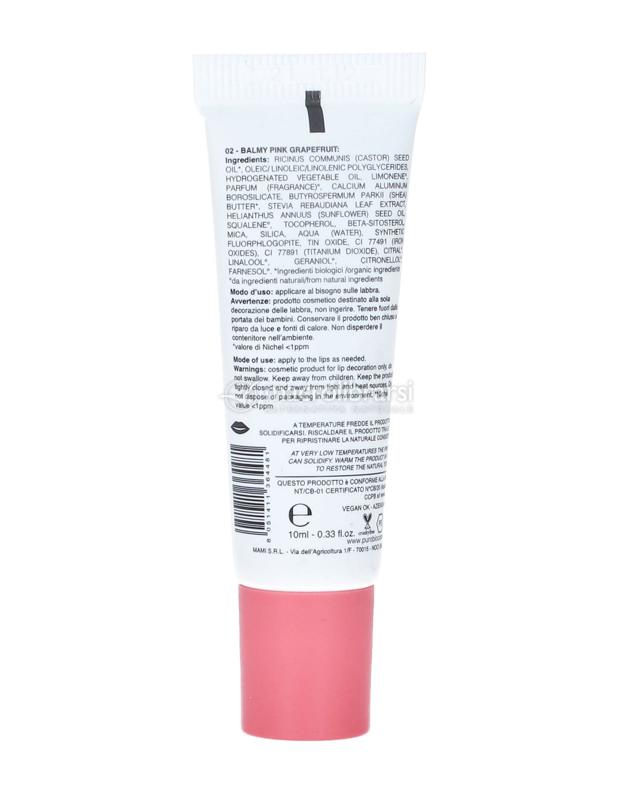Balmy Pink Grapefruit è un balsamo labbra cremoso e vellutato dalla nota olfattiva agrumata e fresca che regala un finish rosa pompelmo trasparente sulle labbra.