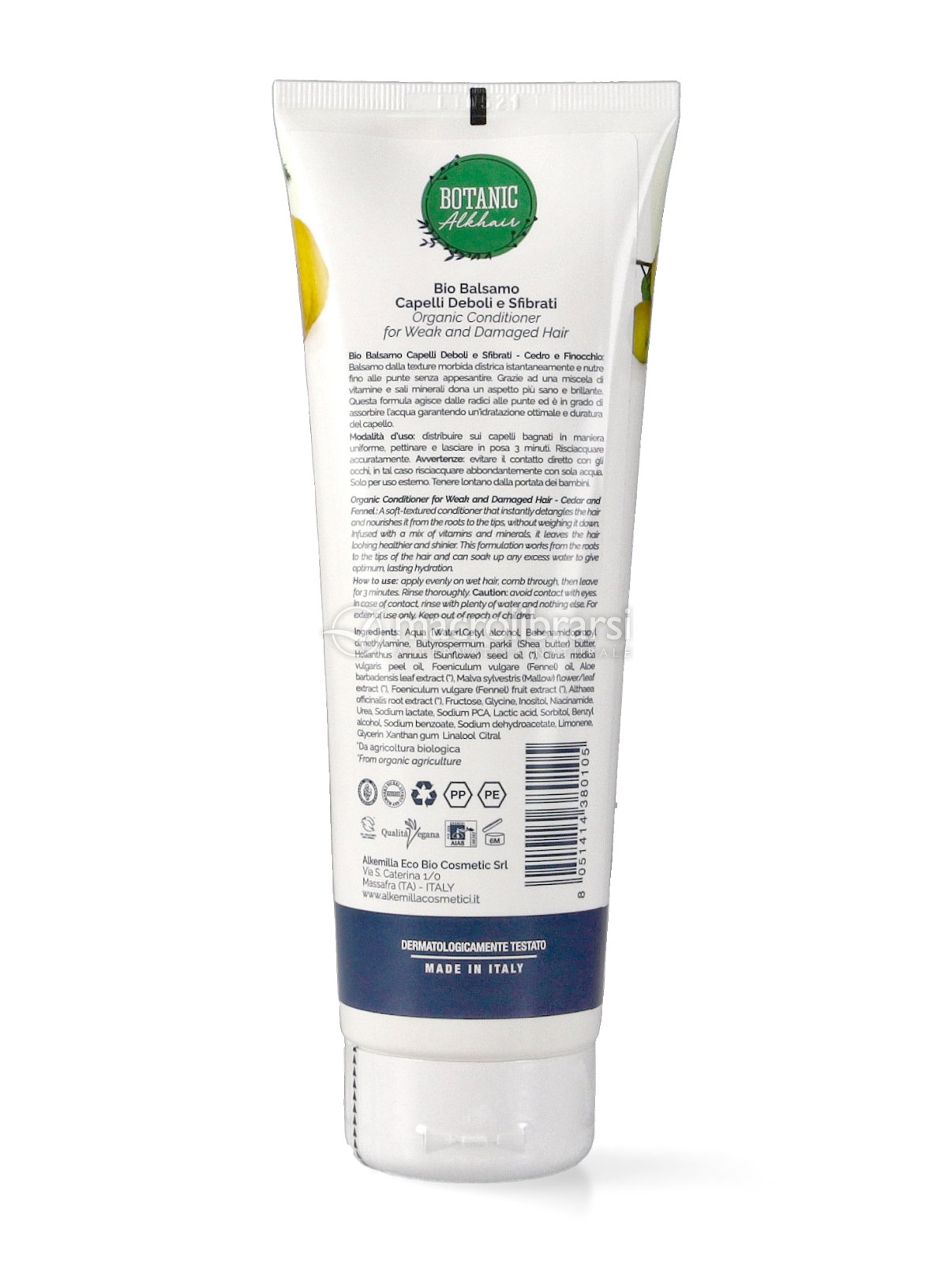 Consigli d'uso: distribuire sui capelli bagnati in maniera uniforme, pettinare e lasciare in posa 3 minuti. Risciacquare accuratamente. Potenzia l' azione utilizzando lo Shampoo Bio Cedro e Finocchio Alkemilla.