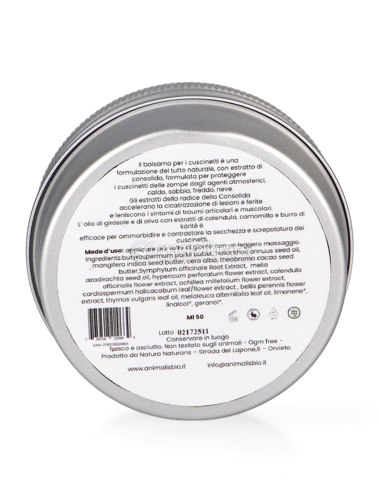 Il Balsamo Cuscinetti Lenitivo e Igienizzante di Animalis Bio avvolge le zampe con una barriera protettiva contro caldo, sabbia, freddo, gelo e neve, aiutando a prevenire screpolature e arrossamenti.