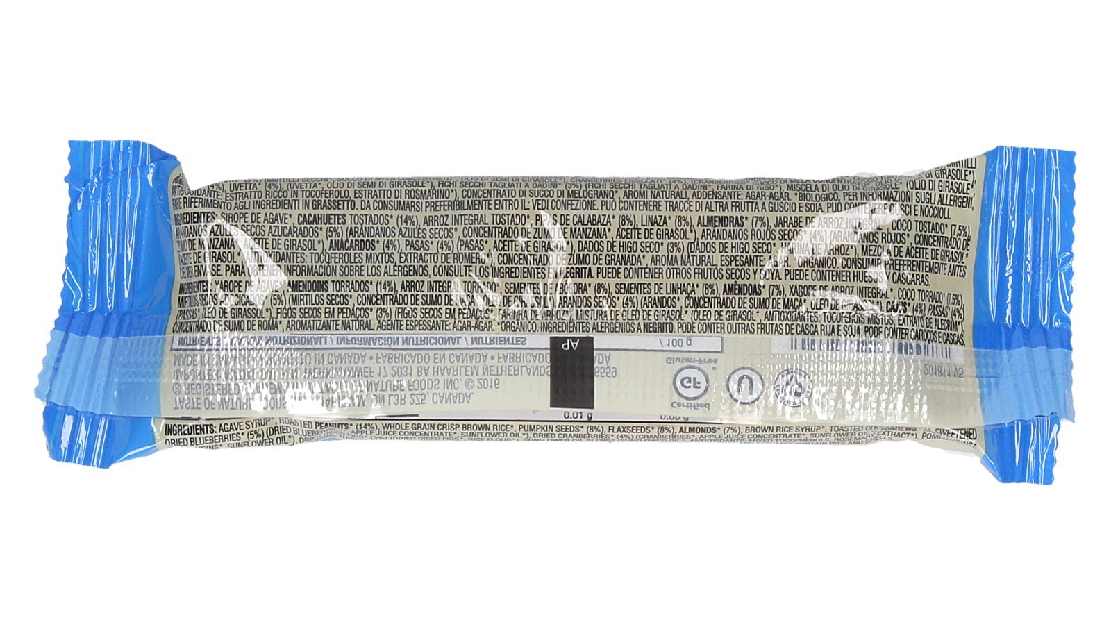mi piacciono i mirtilli. Buona barretta, anche se ha tanti altri ingredienti un po' meno positivi per me: anacardi, arachidi e cocco.
