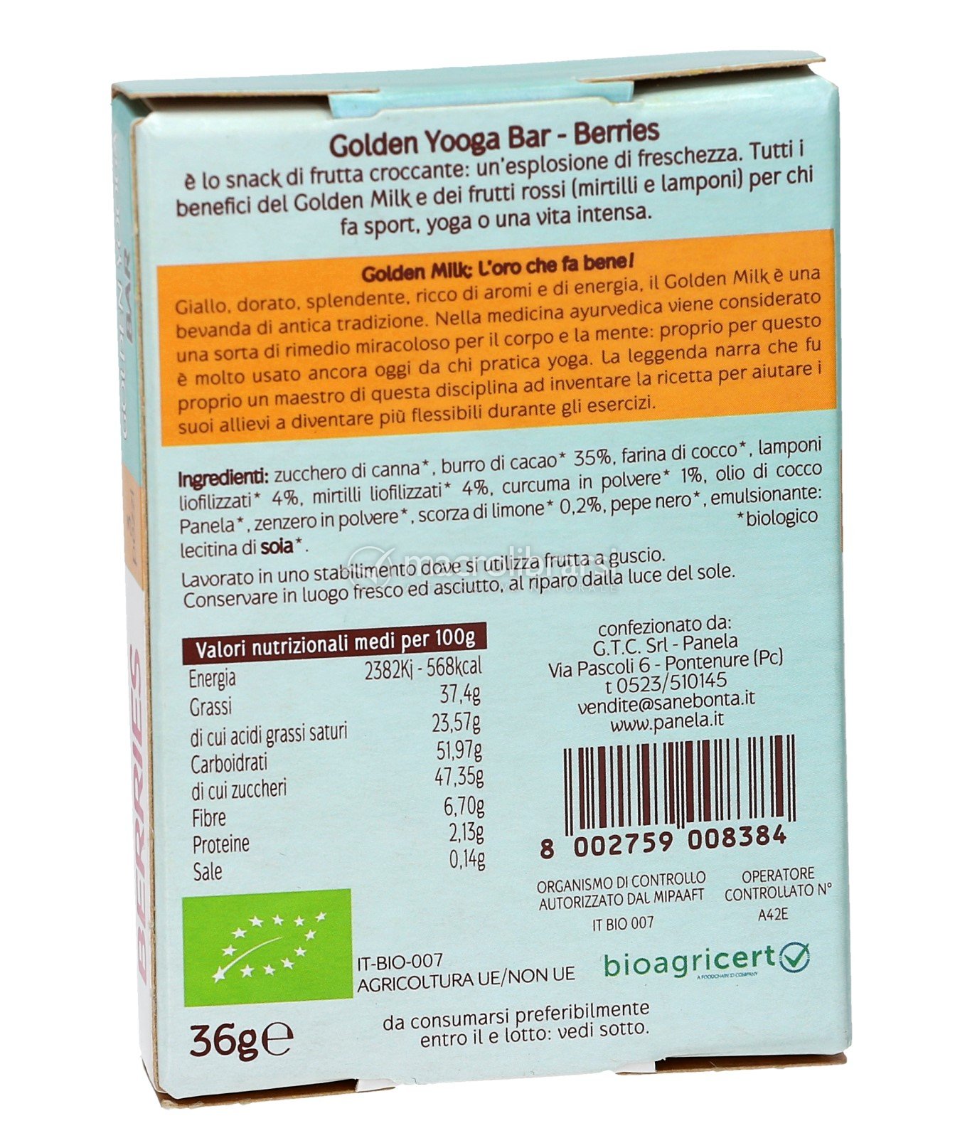 Molto buono questo Golden Milk in formato barretta. Si sentono distintamente i frutti rossi, la curcuma e la scorza di limone. Un solo piccolo appunto; l'avrei preferita un poco meno dolce. Una scoperta molto positiva i prodotti di Panela!