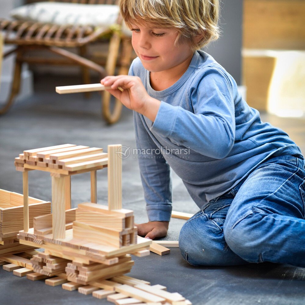 Kapla aiuta a sviluppare l'ideazione, la concentrazione e la progettazione perché offre stimoli a livello motorio, sensoriale e simbolico.