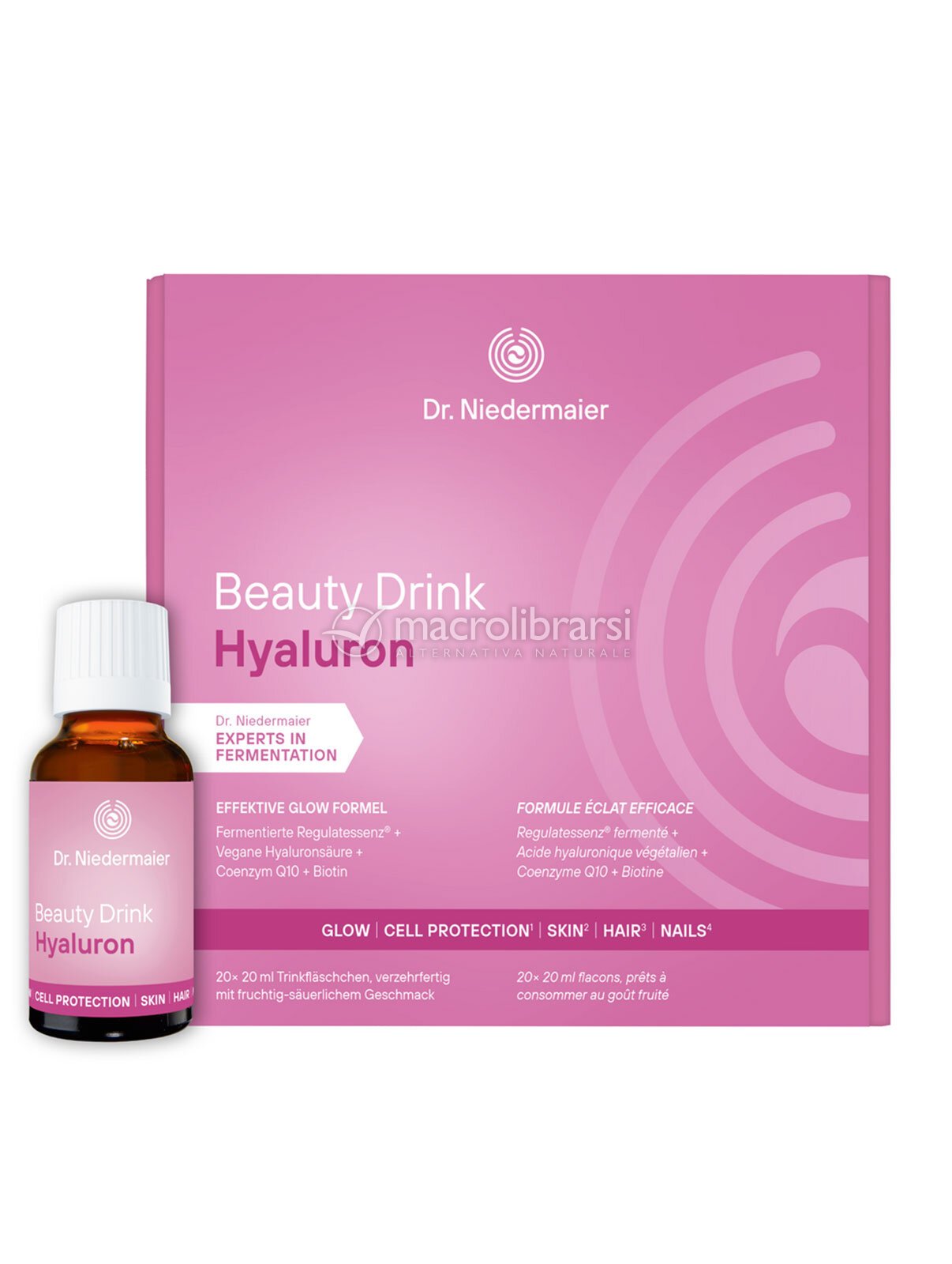 Grazie al potere della fermentazione naturale, Beauty Drink Hyaluron favorisce un incarnato fresco, uniforme e visibilmente più luminoso.