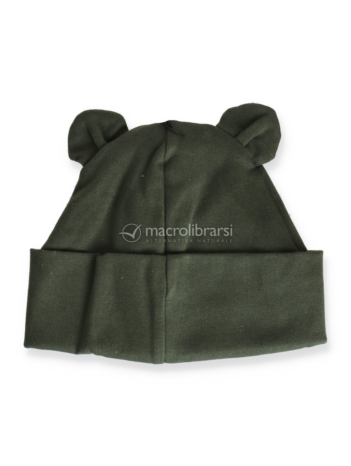 Berrettino con orecchie da orso in cotone organico verde scuro.