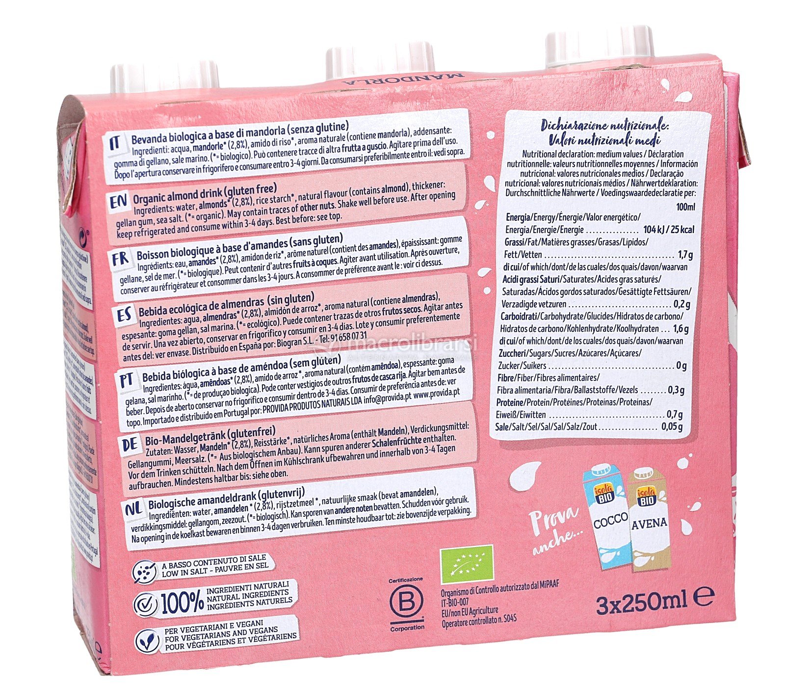 Solo mandorle e acqua, senza zuccheri, grassi, senza glutine e addensanti. Isola Bio è una marca italiana ottima di prodotti eccezionali! Lo compro in pack da 6.