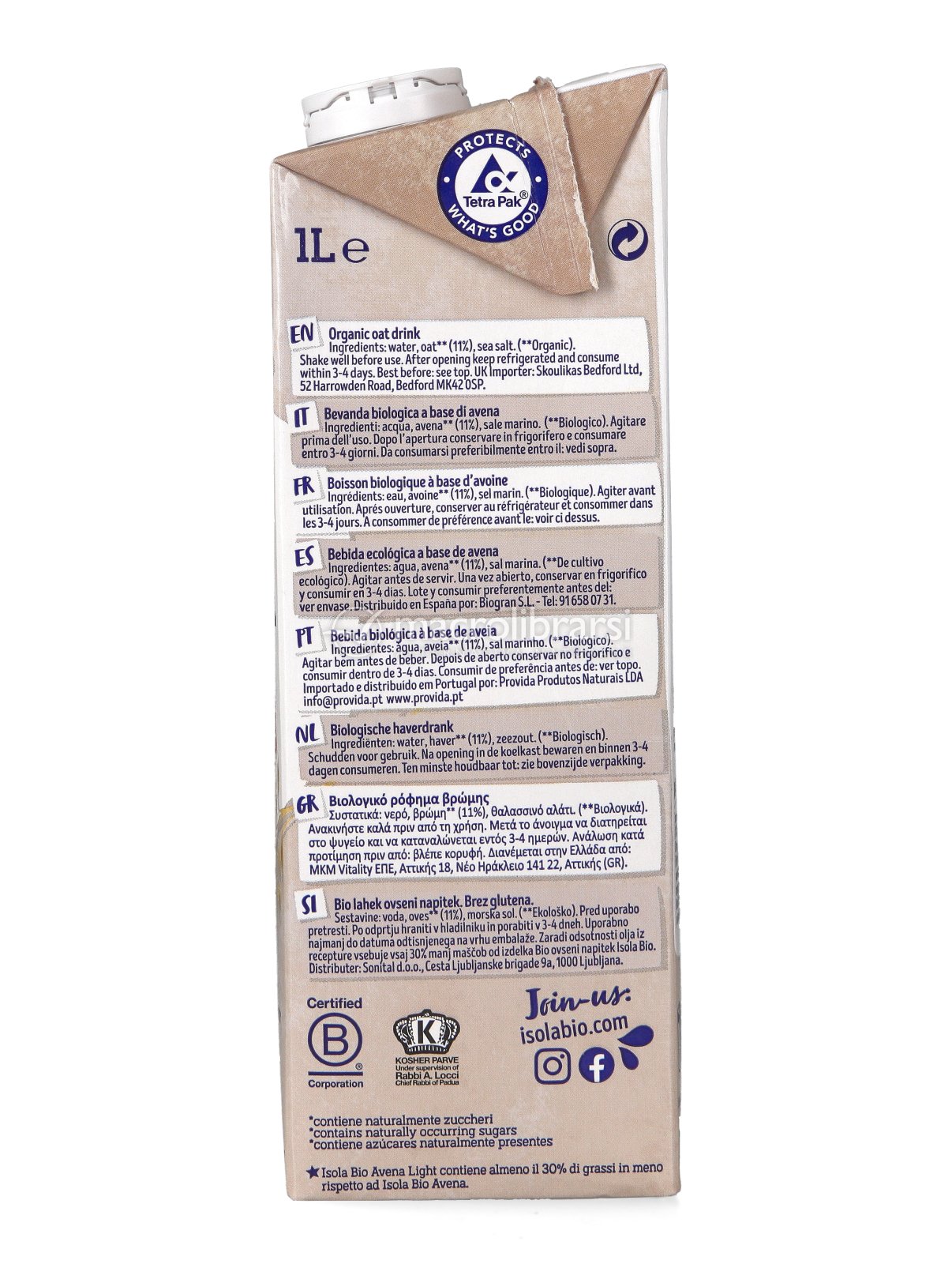 Avena Light è l'alternativa vegetale leggera e gustosa senza lattosio per chi vuole tenere sotto controllo calorie con la qualità e l'inconfondibile bontà dei prodotti Isola Bio.