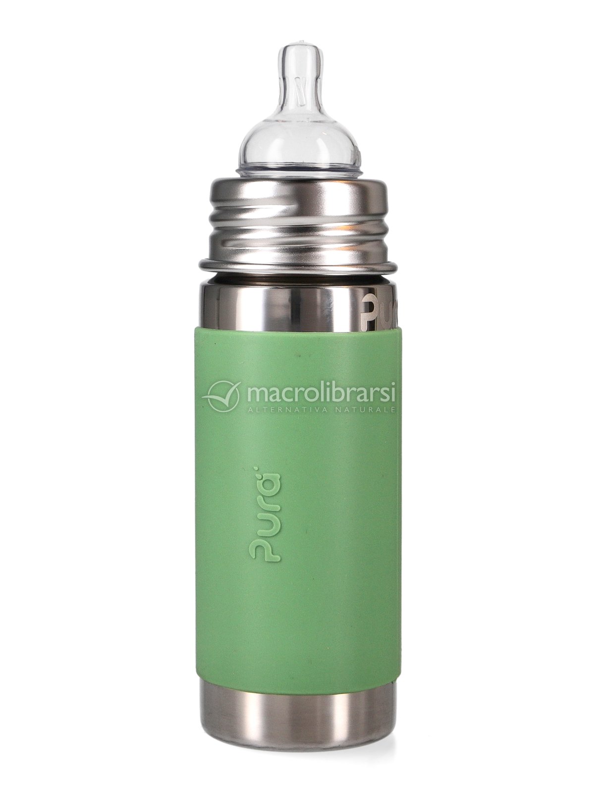La tettarella in silicone per uso medico può essere sostituita con altri accessori di Pura (altre tettarelle, beccucci per i bambini dai 6 mesi, cannucce e tappi).
