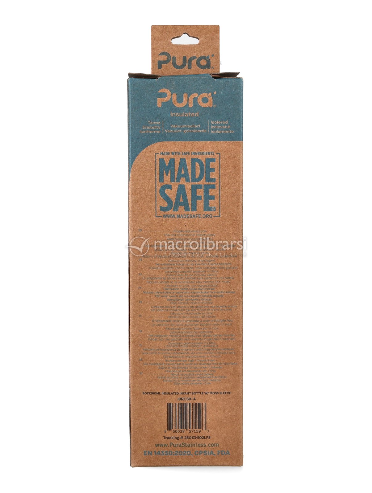 | Confezione | Bottiglia da 260 ml + tettarella in silicone + tappo da viaggio |