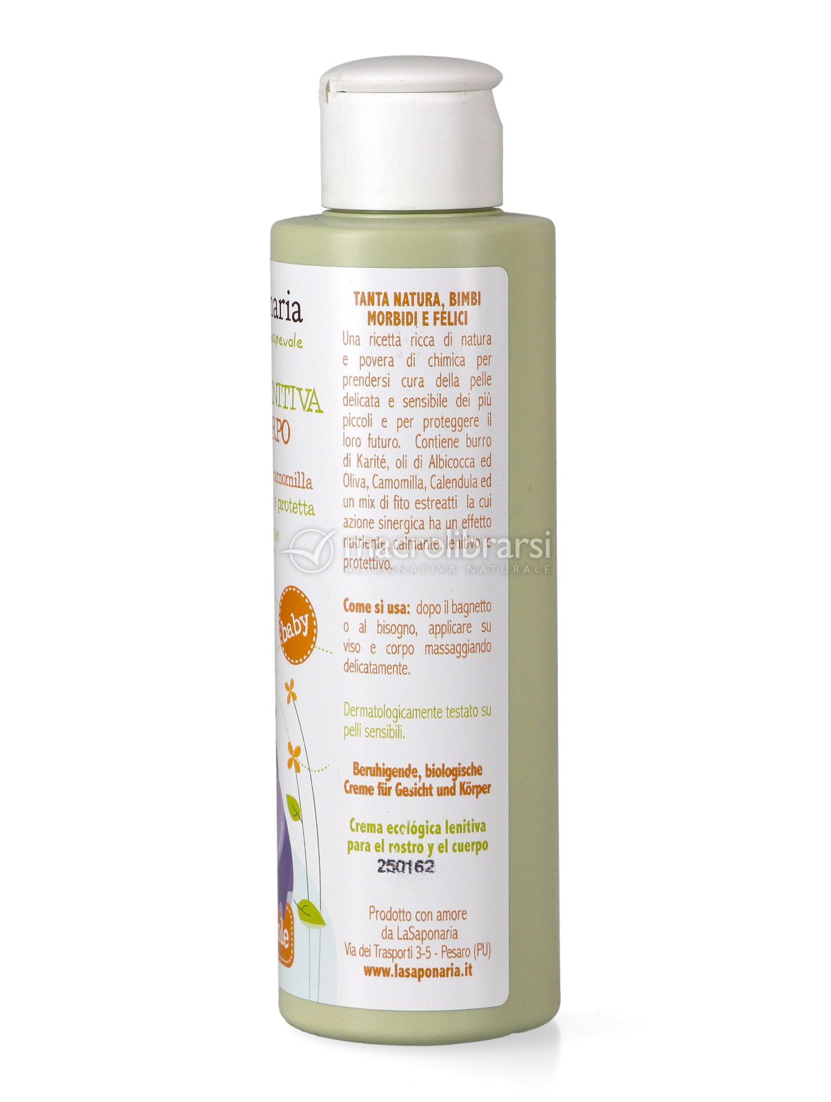 Questa crema corpo lenitiva è stata specificamente formulata per idratare e proteggere la pelle del tuo bambino.