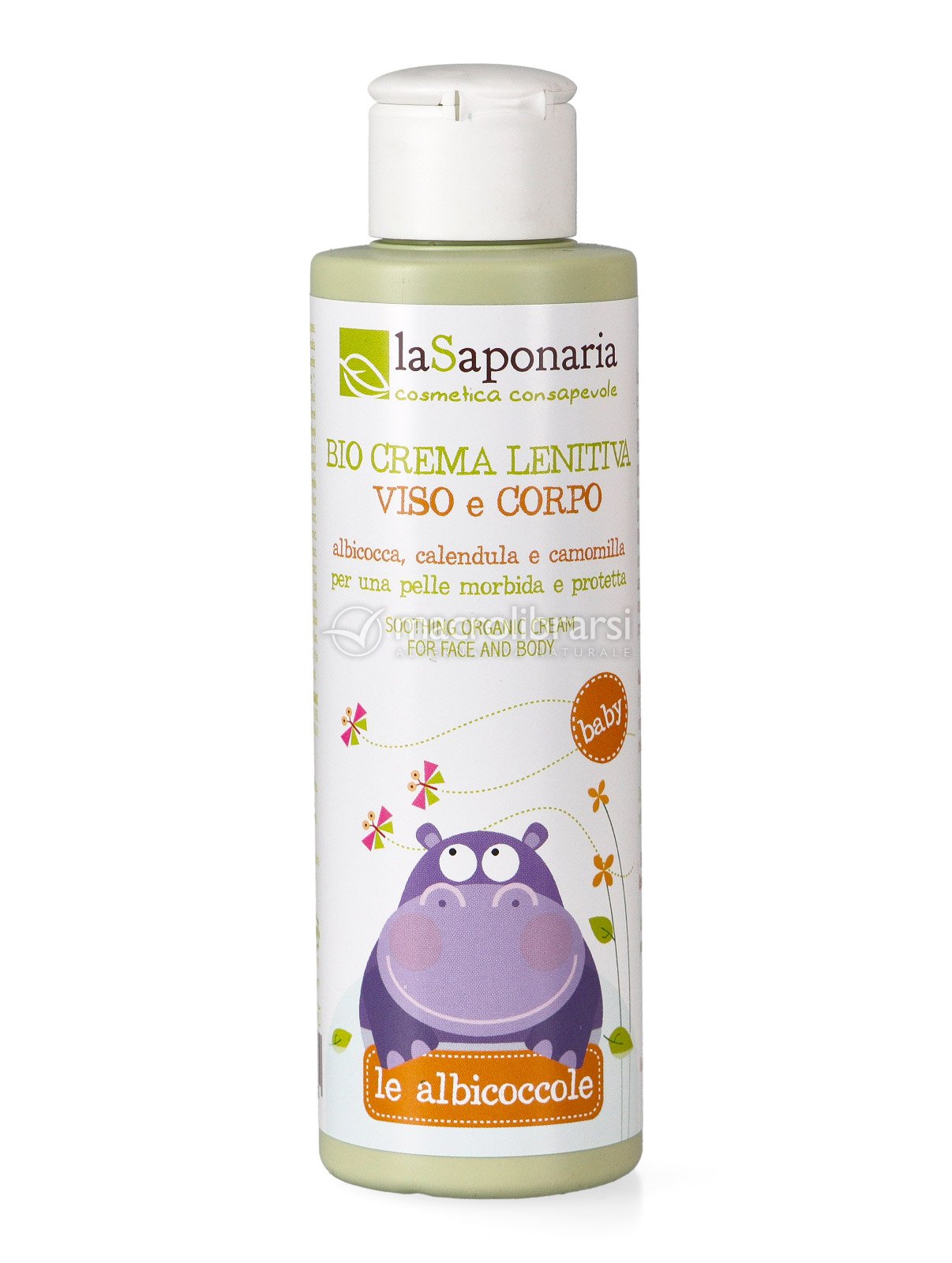 Contiene burro di Karitè biologico, oli di Albicocca e Oliva, nutrienti ed emollienti ed estratti vegetali biologici di Hamamelis, Camomilla e Calendula dalle proprietà addolcenti e lenitive.