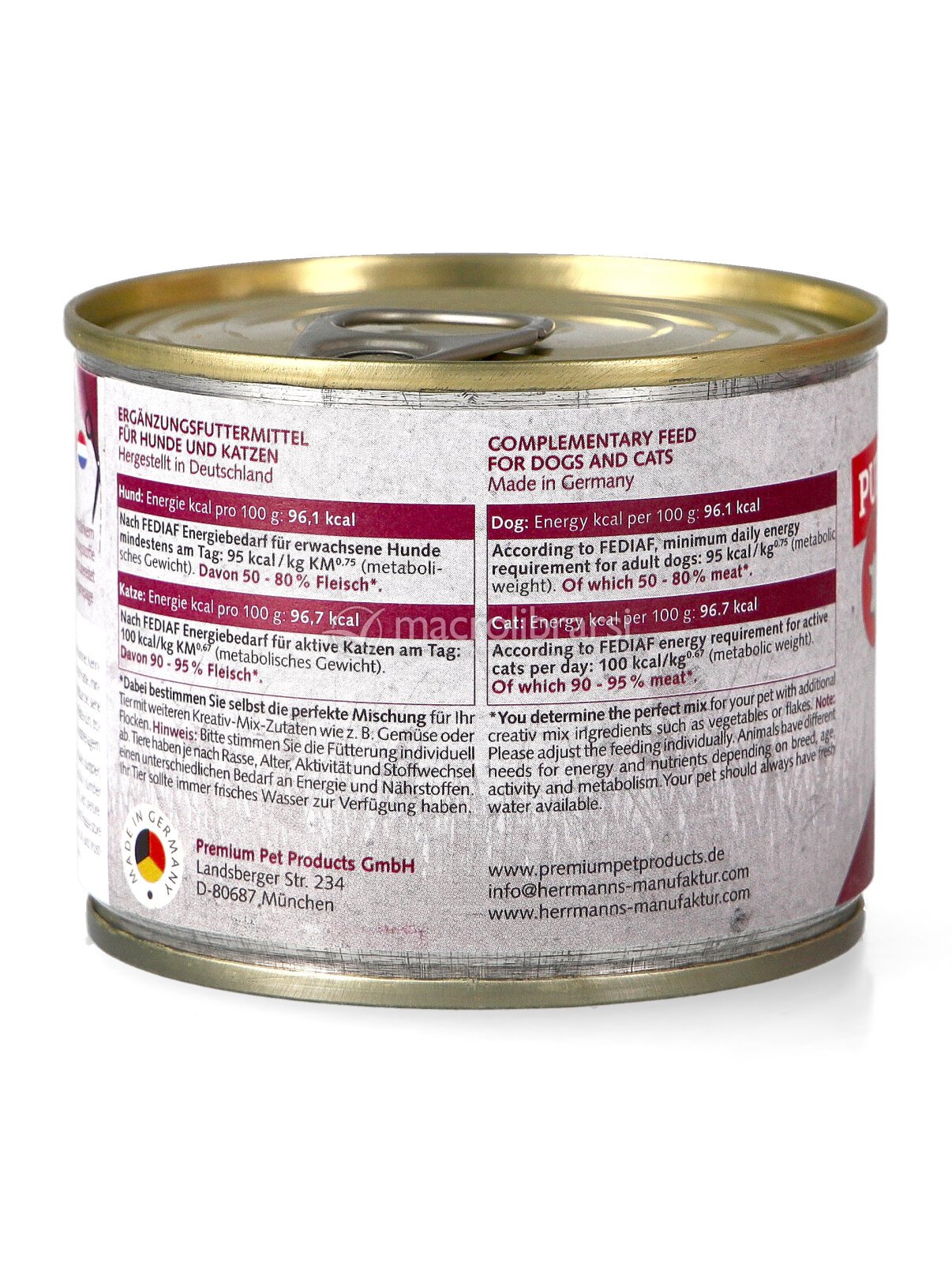 L'umido di manzo biologico Herrmann's è un alimento complementare perfetto per completare la dieta B.A.R.F. o la cucina casalinga.