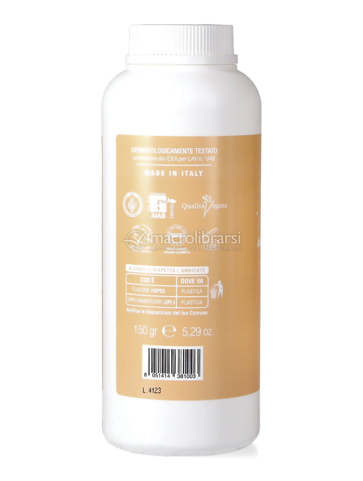 Svolge un’azione lenitiva, protettiva ed assorbente grazie agli estratti biologici di Malva e Camomilla in olio di girasole. Il suo impiego principale è soprattutto quello di contribuire all’assorbimento dell’umidità della pelle o dell’eccessivo sebo prodotto. E’ un ottimo alleato nella cura e prevenzione delle piaghe da pannolino o utilizzato dopo il bagno e la doccia per addolcire la pelle, profumarla, lasciandola così pulita più a lungo.