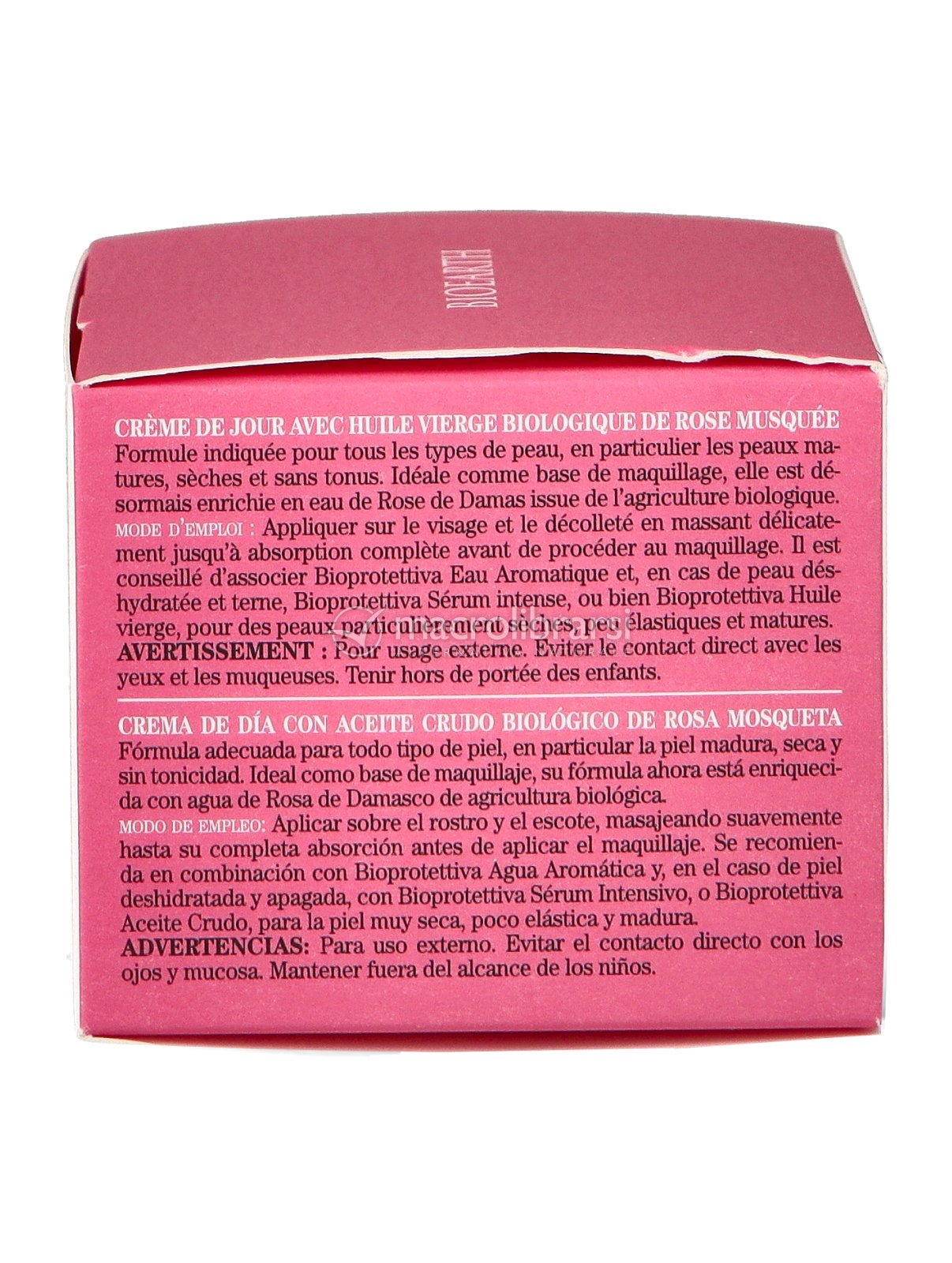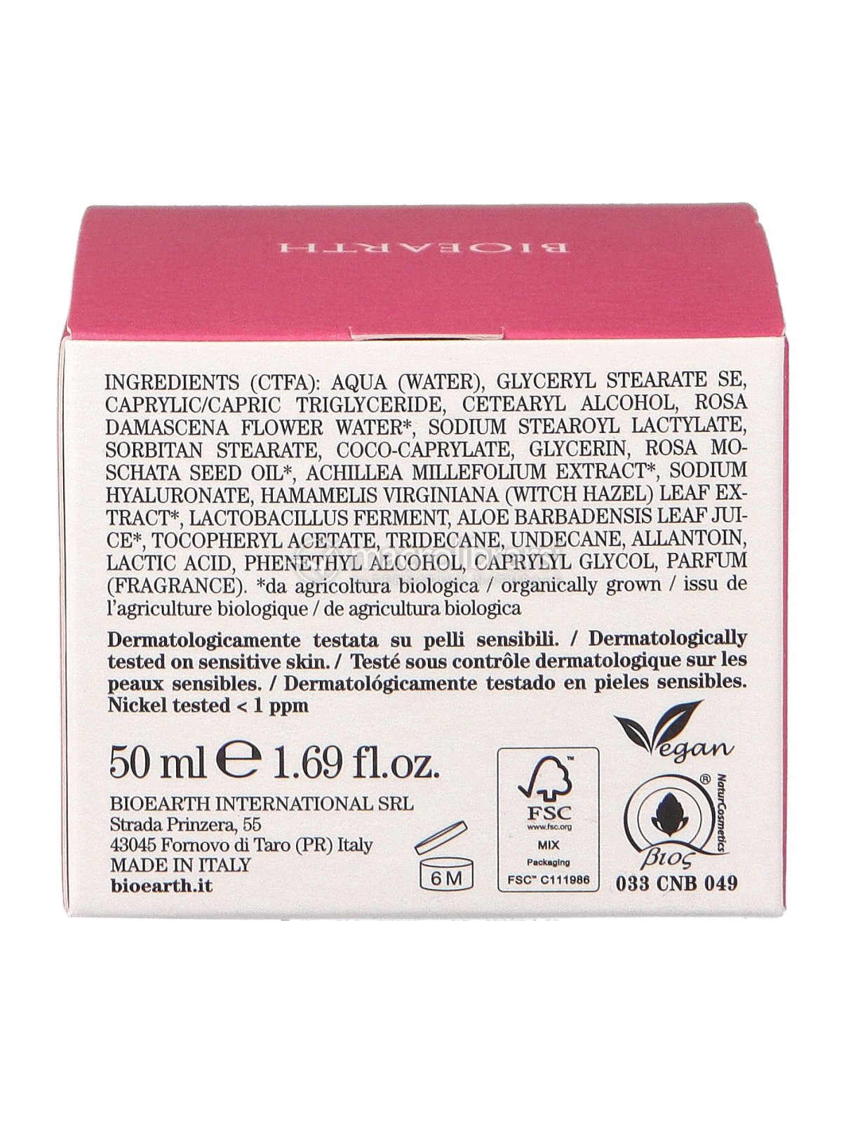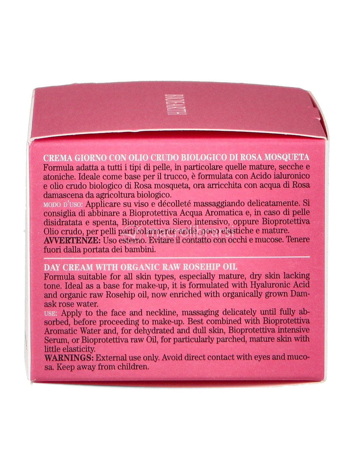 Contiene preziose sostanze funzionali di origine naturale quali l'olio crudo biologico di Rosa Mosqueta, acido ialuronico e arricchita con acqua di Rosa damascena da agricoltura biologico ad azione idratante, protettiva, restitutiva ed emolliente.