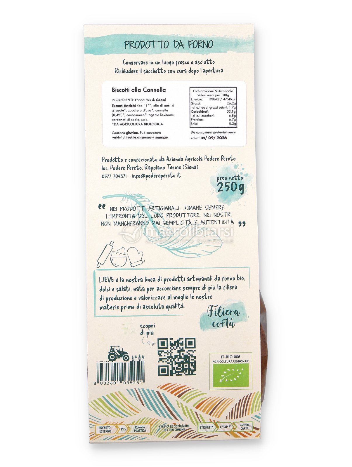 I Biscotti alla Cannella e Cardamomo di Podere Pereto sono realizzati con farina biologica di grani teneri antichi tipo “1”, per un gusto autentico e naturale.