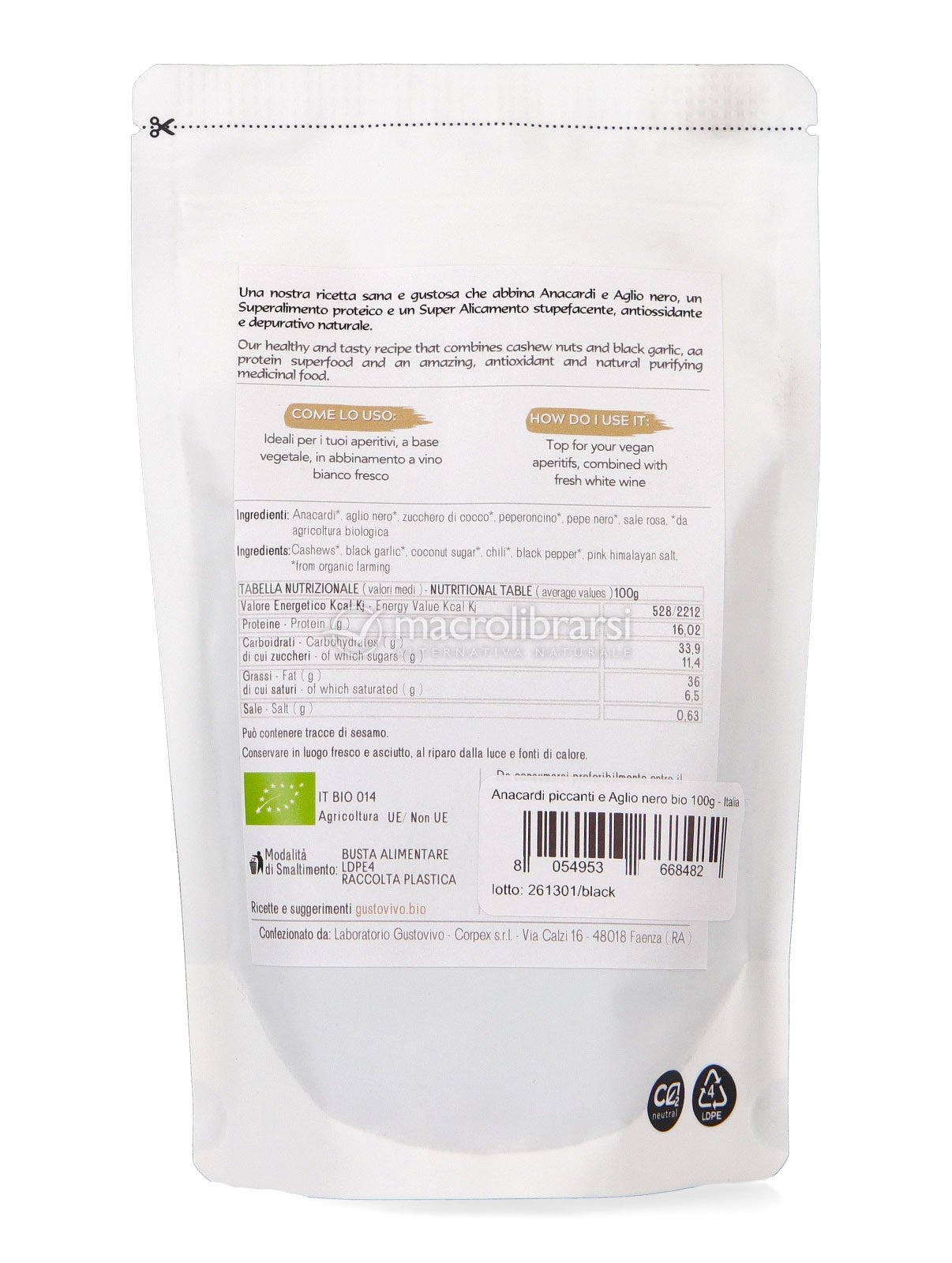 Mangio abbastanza salutare, ma ogni tanto devo sfogarmi in qualche junk food. Cerco di farlo in modo più o meno salutare. Fortunatamente su Macrolibrarsi ci sono diversi prodotti tra cui scegliere. Ho provato questi anacardi. Il gusto è buono. L'aglio si sente, non tanto (a me piace molto), ma va bene così.