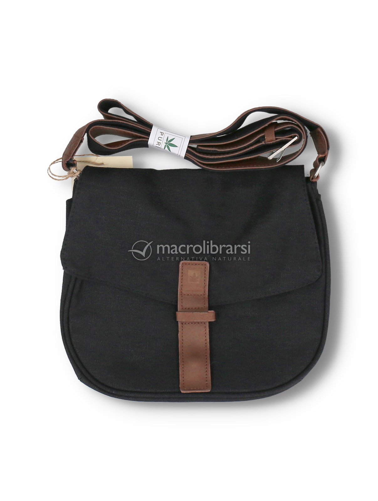 La borsa in canapa verde è pratica e compatta, con lembo ribaltabile e chiusura a clip, perfetta per l’uso quotidiano.